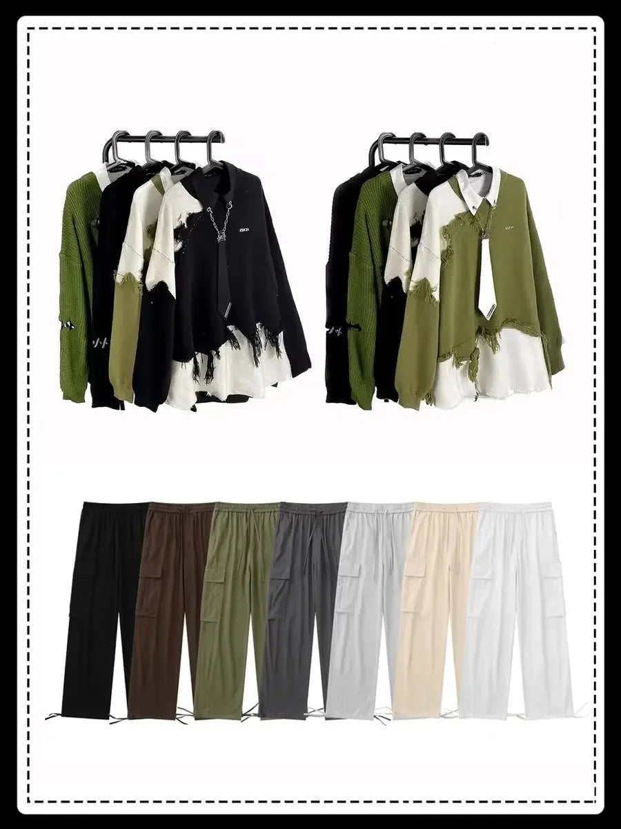 Men's Sets Corduroy Cargo Pants for Men Loose Men's Hoodies Sweatshirt Black Japanese Streetwear Hip Hop Harajuku Autumn