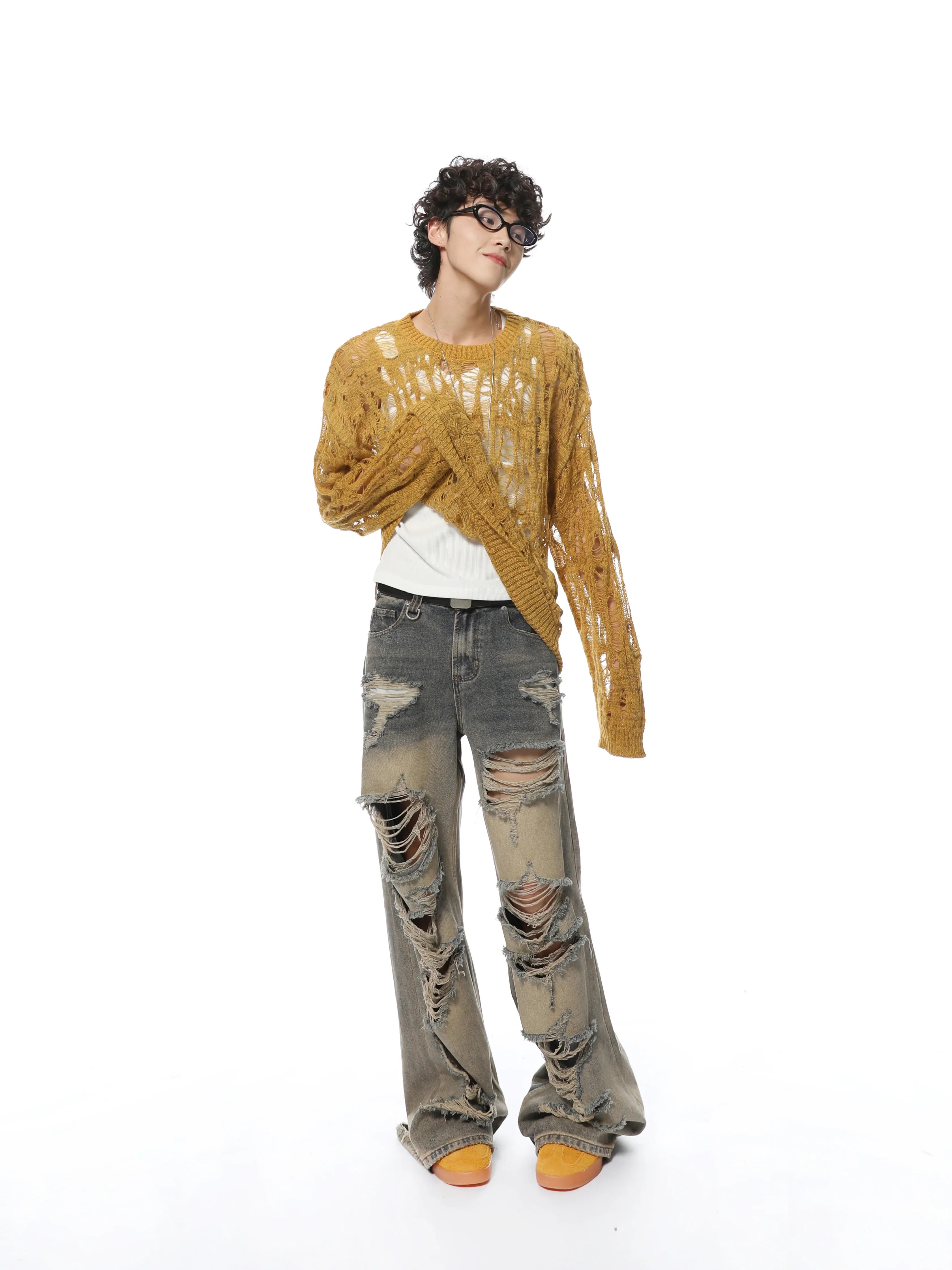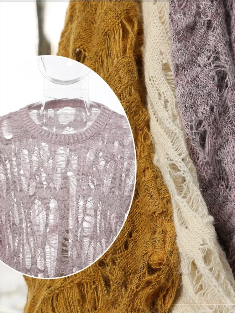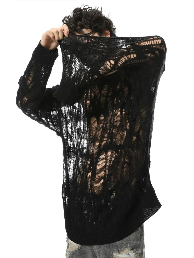 Slouchy Sweaters Men Hollow Out Baggy Hole Sun Protection Lightweight Long Sleeve Streetwear Vintage Fashion Knitting Summer Ins