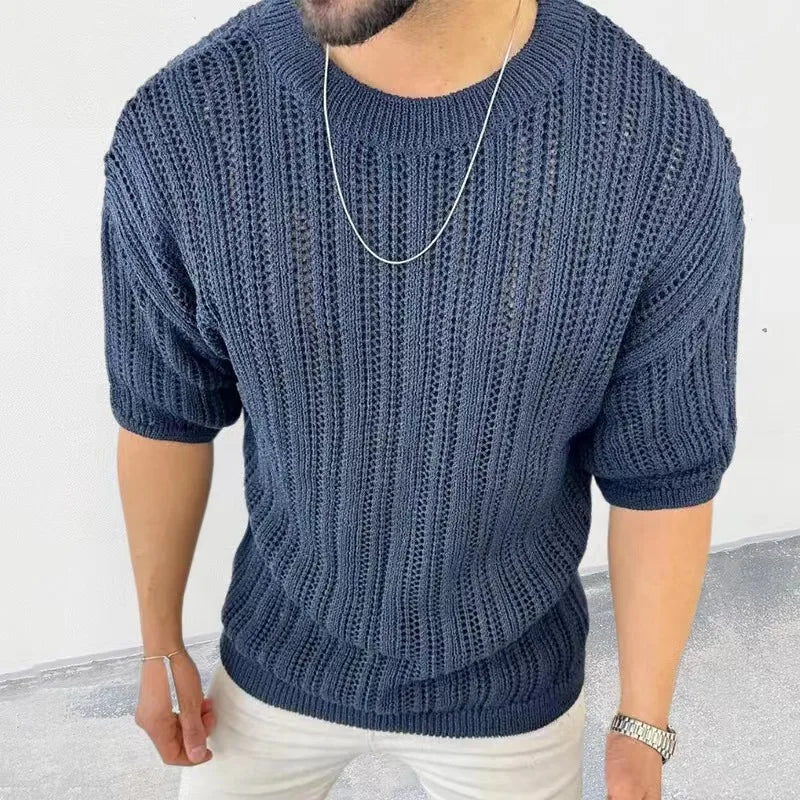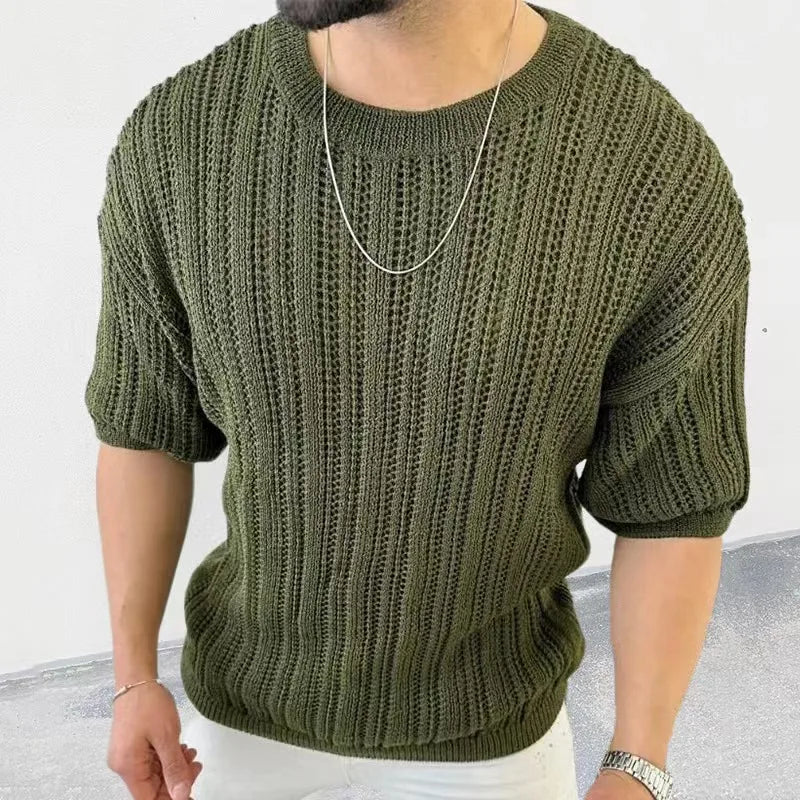 Spring Knitting Custom Tees Sweater For Men Slim Fit O-Neck Solid Hollow Mesh Man Pullover Autumn Long Sleeve Stretch Tops