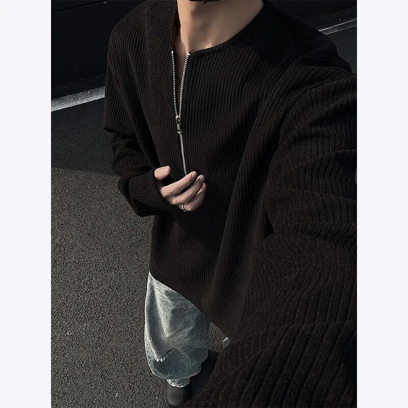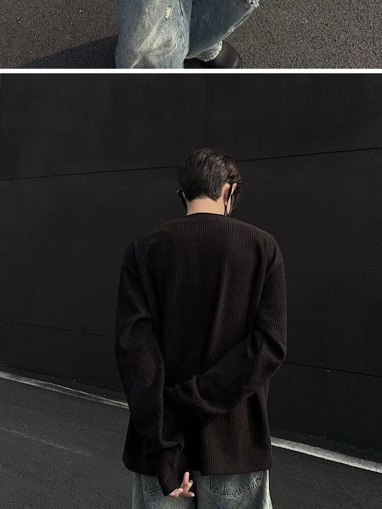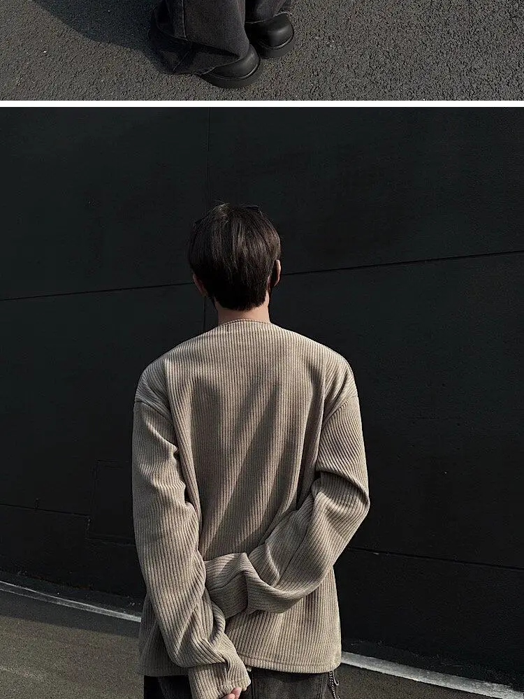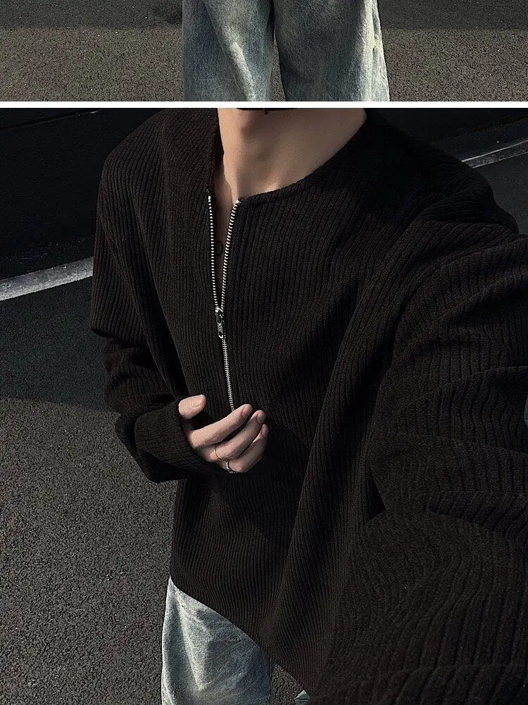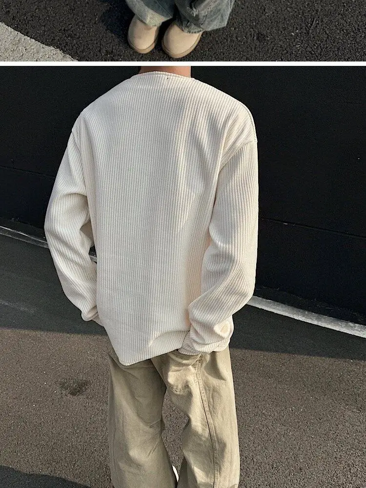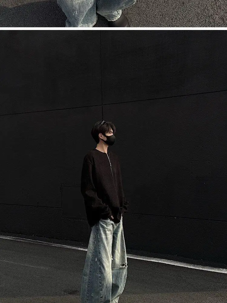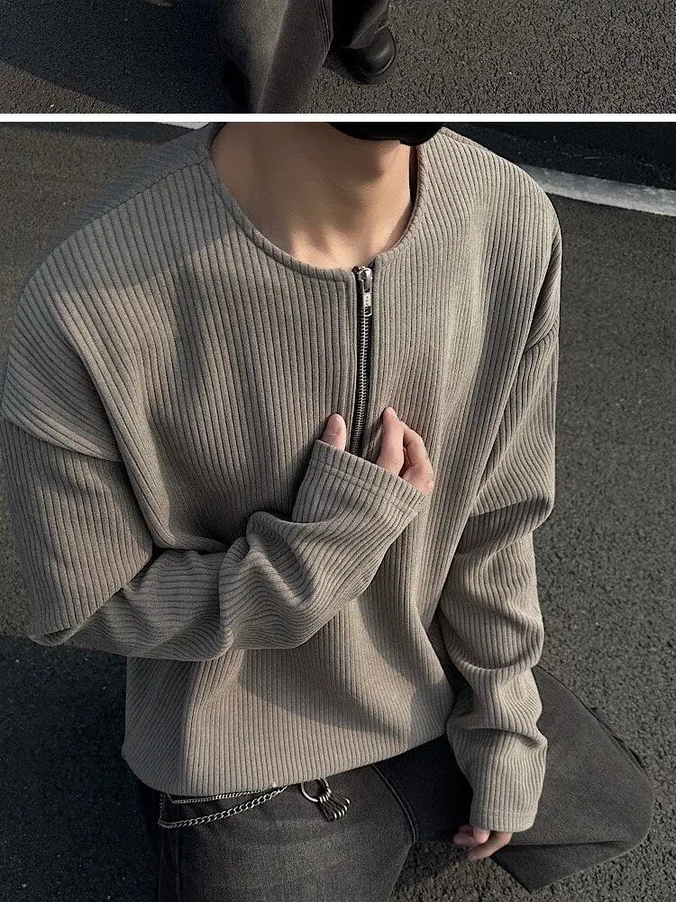 Spring Long Sleeved T-shirt Men Casual Pleated T Shirt Men Streetwear Korean Loose Zipper Pullover T Shirt Mens Sweatshirt