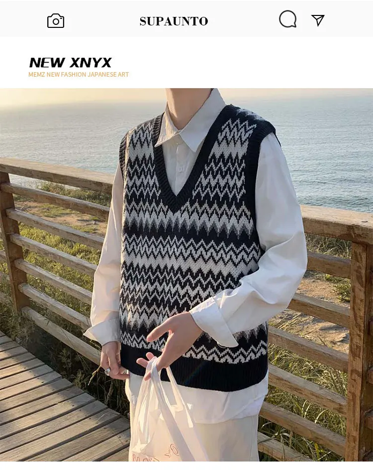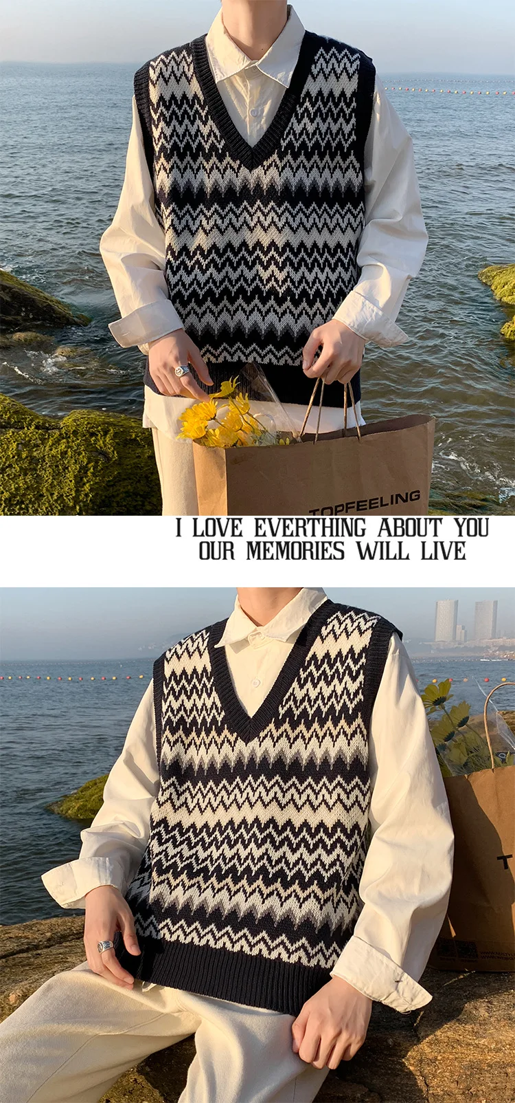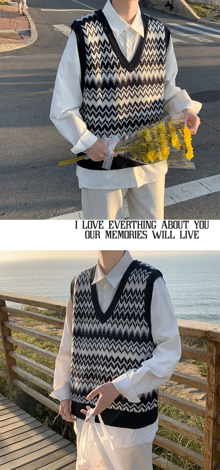 Striped Knitted Sweater Vest Men Ulzzang Soft Loose Casual All-match Harajuku Handsome Stretchy Vintage Sleeveless Streetwear