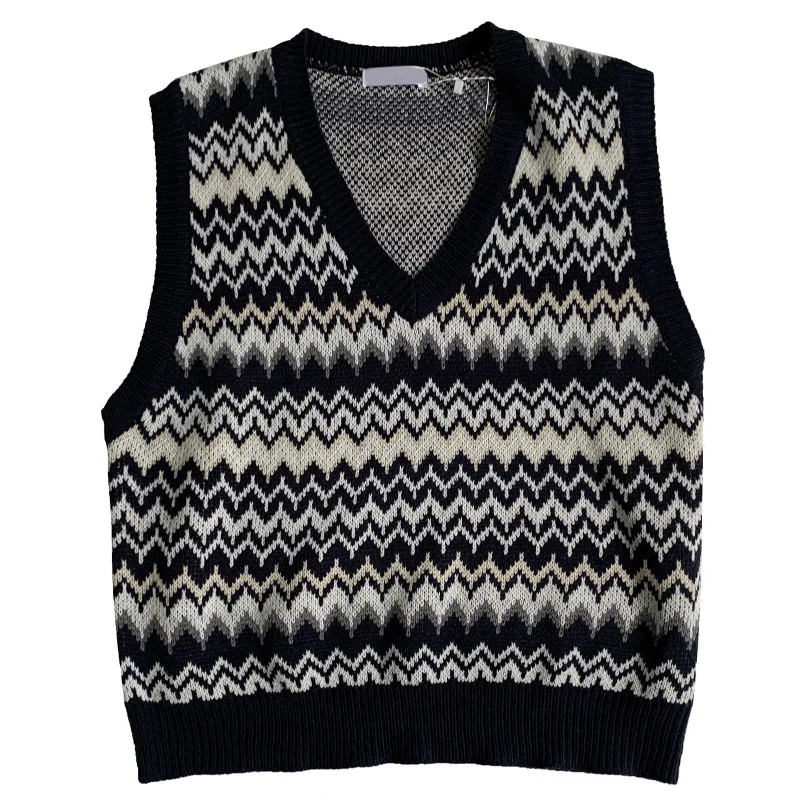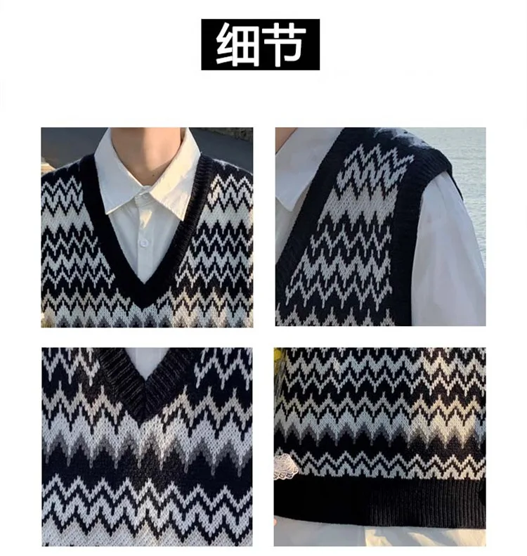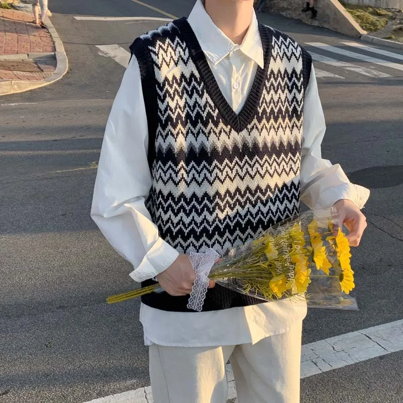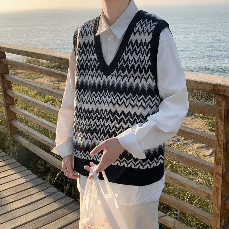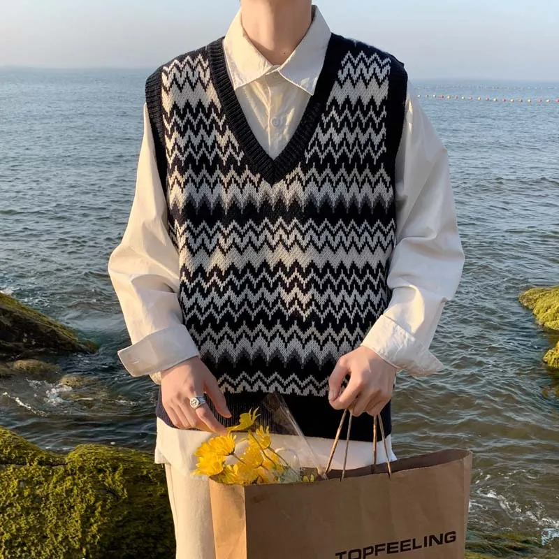 Striped Knitted Sweater Vest Men Ulzzang Soft Loose Casual All-match Harajuku Handsome Stretchy Vintage Sleeveless Streetwear