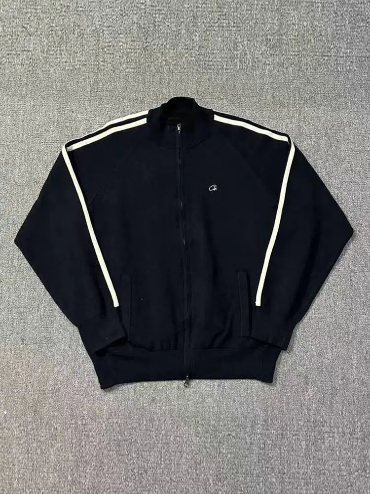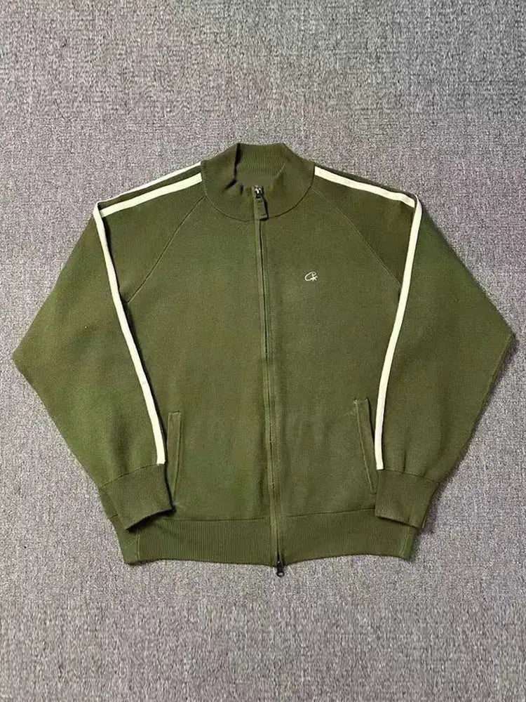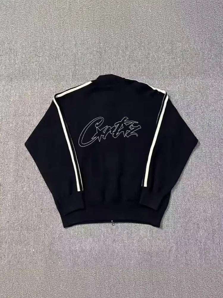Trendy Street Men's Zipper Cardigan American Loose Casual Long Sleeve Sweater Jacket Autumn Embroidery Knitted Coat Tops
