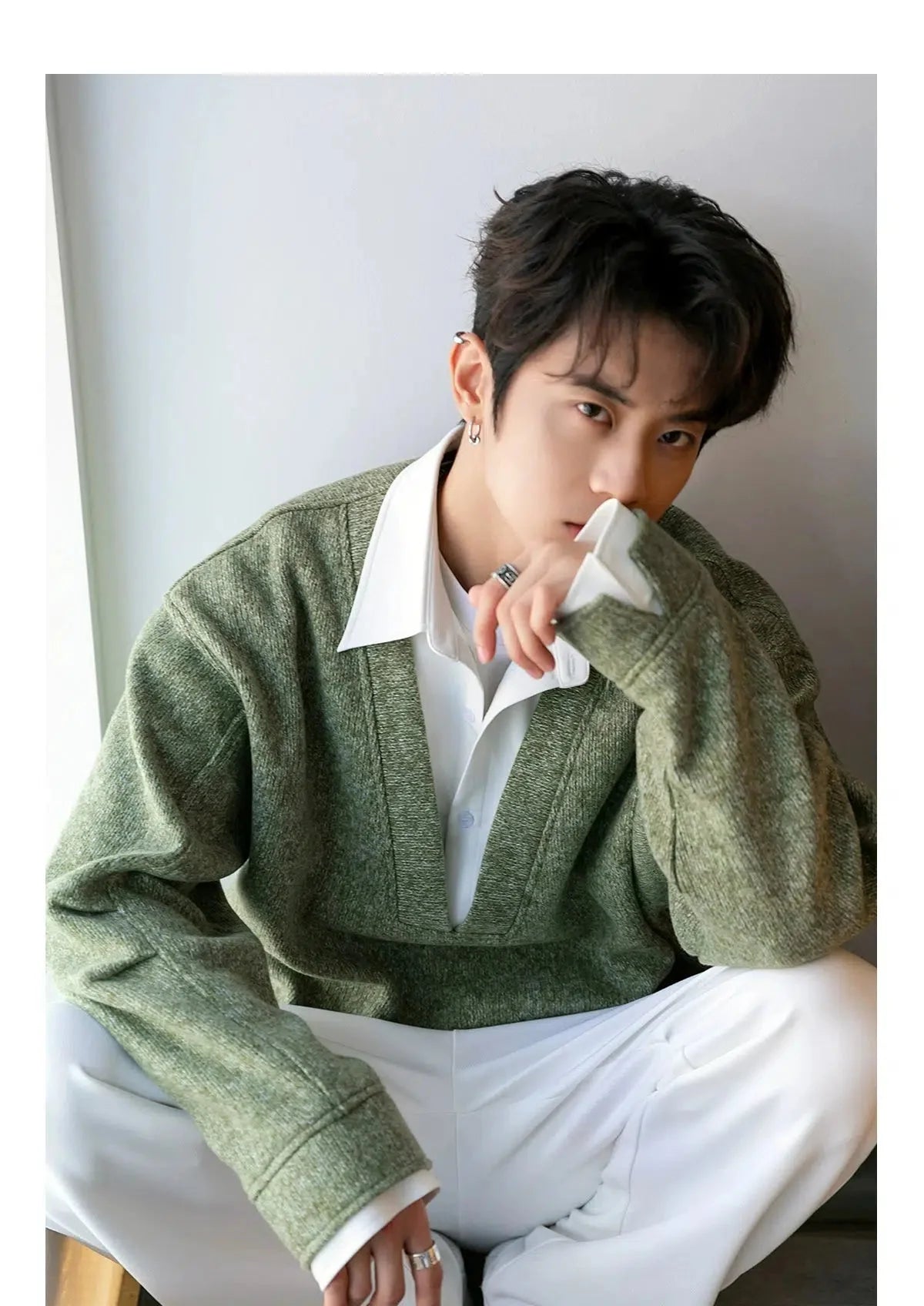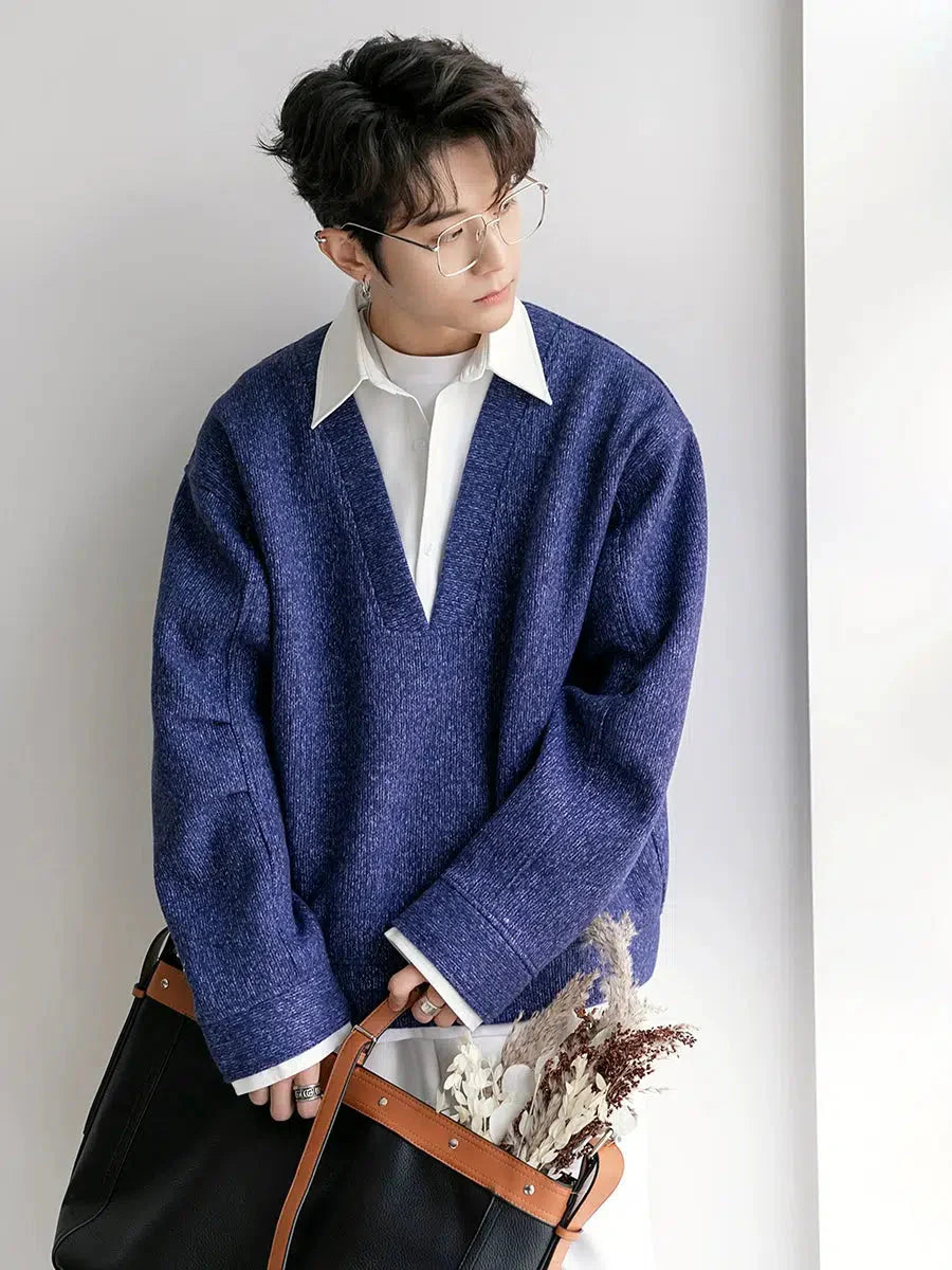 Gotmes Men's Autumn Round Neck Sweater Korean Loose Casual Oversize Knit Pullover Youth Trend Fashion Striped Sweater Men