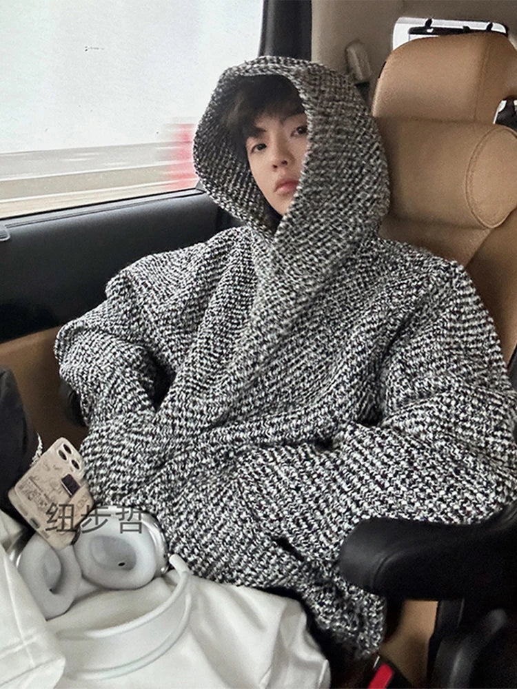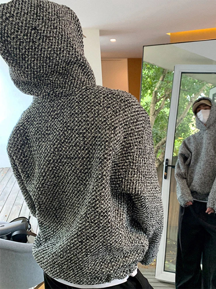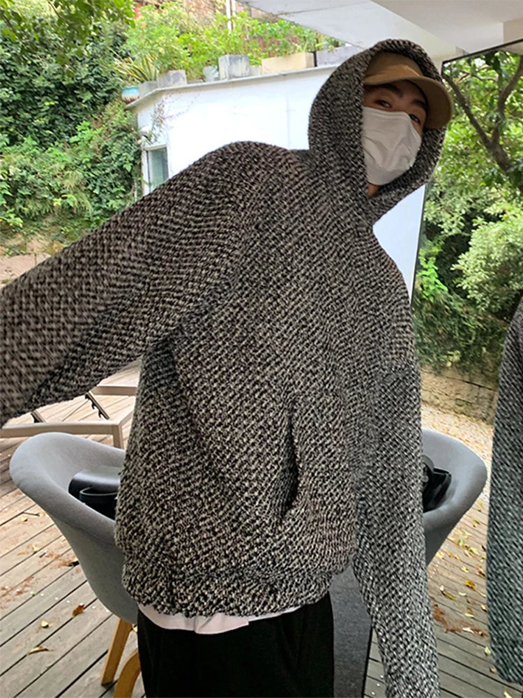 Vintage Men Texture Hooded Sweatshirt Spring Y2k Loose Long Sleeves Pocket Hoodie Tops Fashion Luxury High Quality Pullover