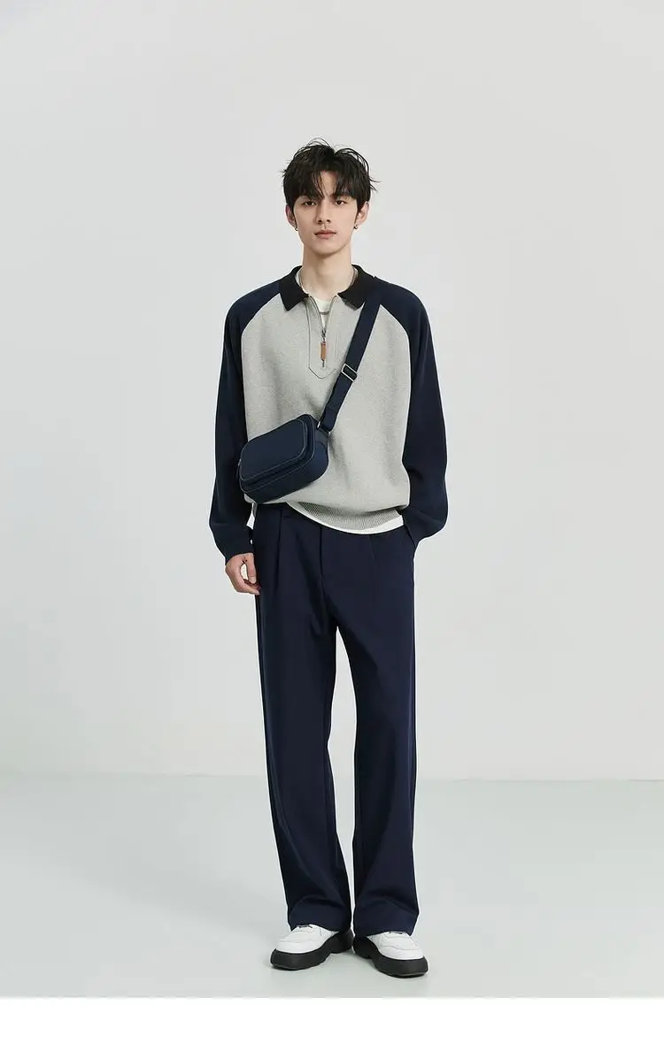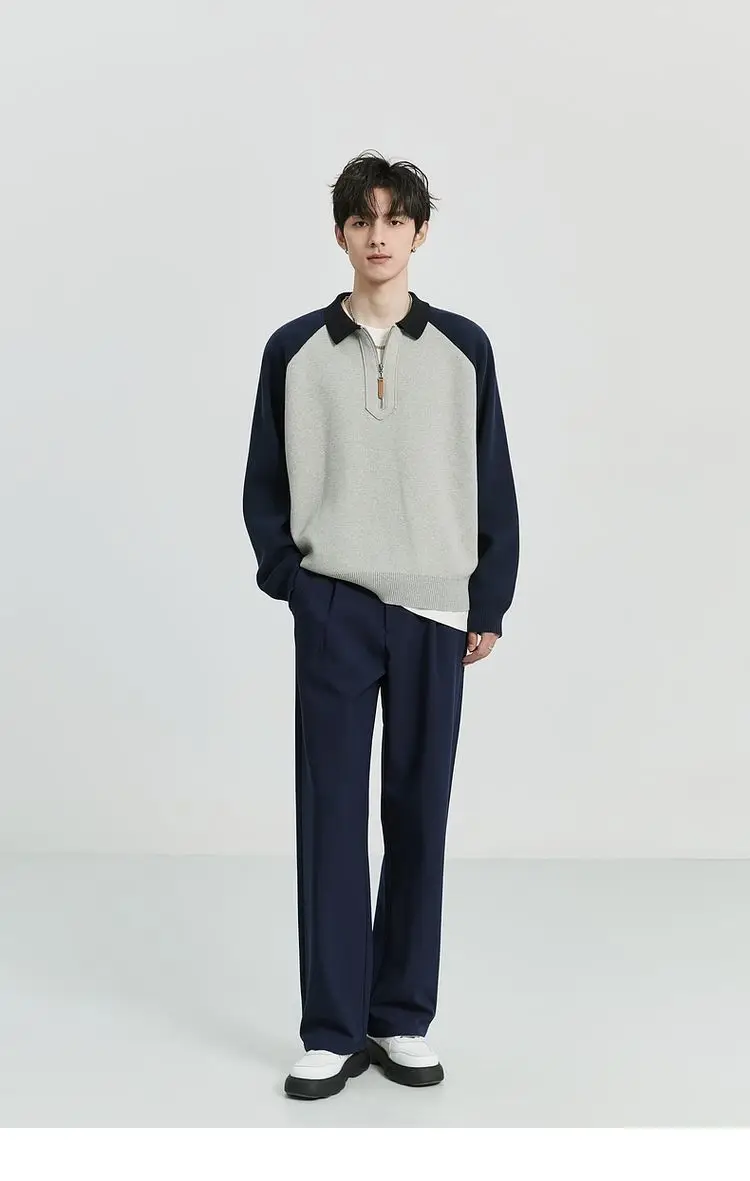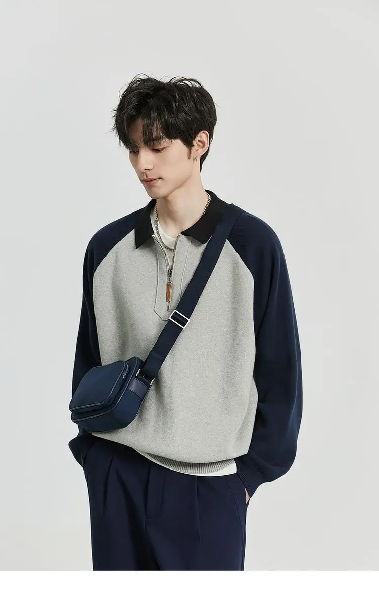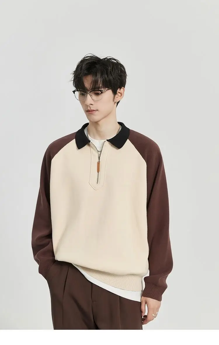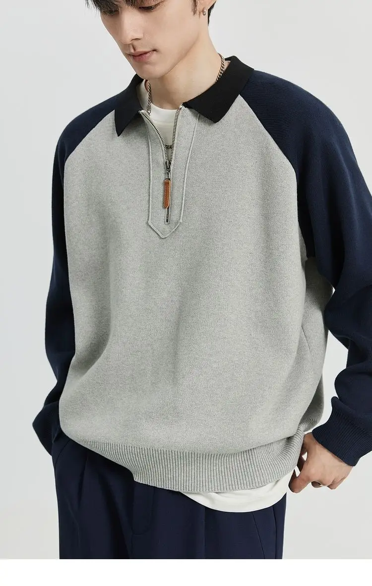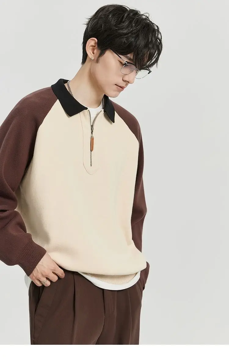 Winter KPOP Fashion Style Harajuku Slim Fit Outerwear Loose Casual All Match Lapel Knitwear Insert Zipper Long Sleeve Sweaters