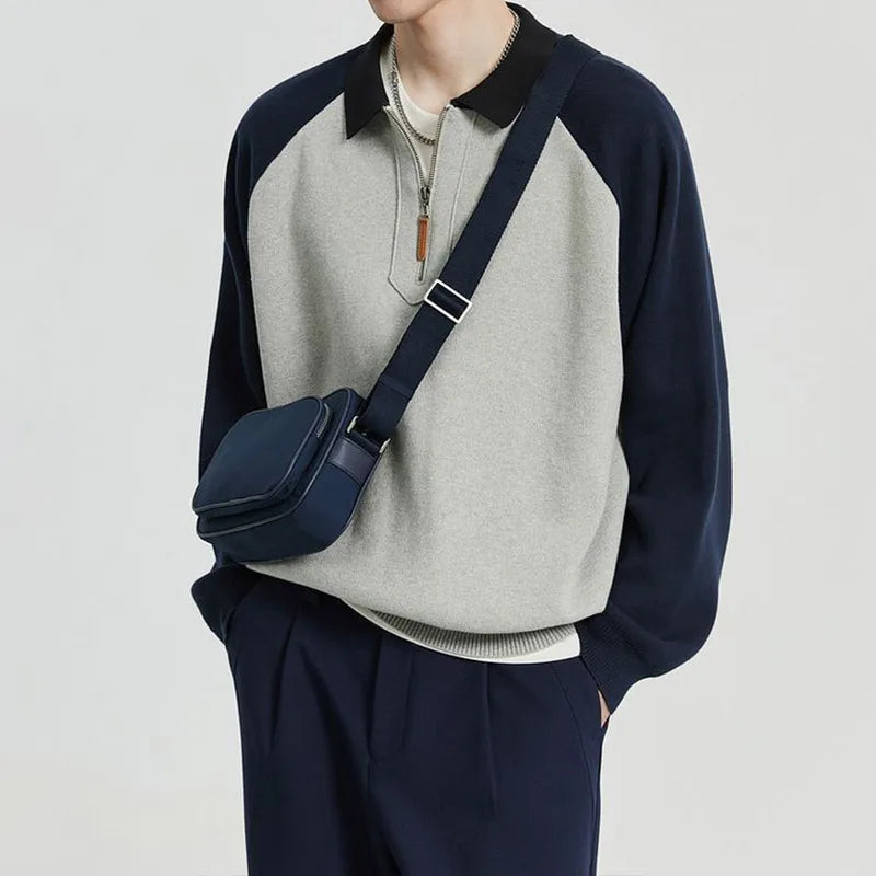 Gotmes Men's Autumn Round Neck Sweater Korean Loose Casual Oversize Knit Pullover Youth Trend Fashion Striped Sweater Men
