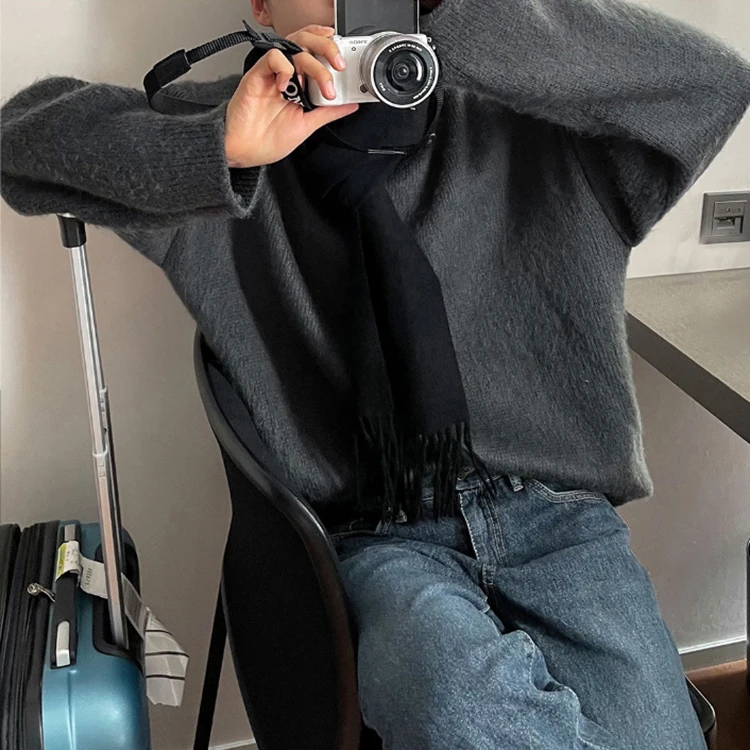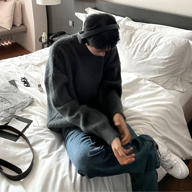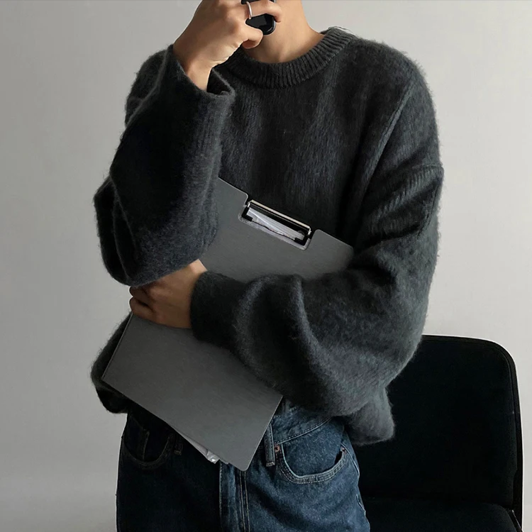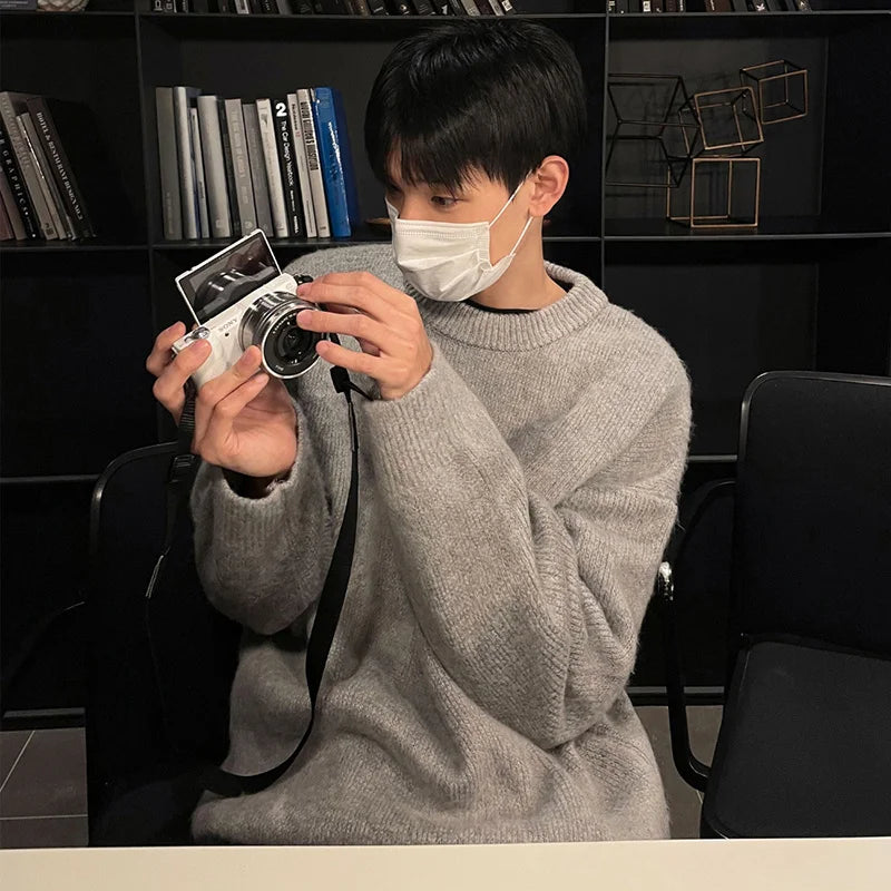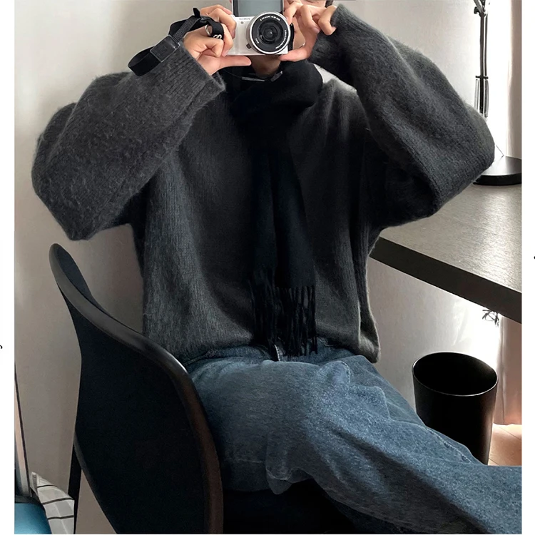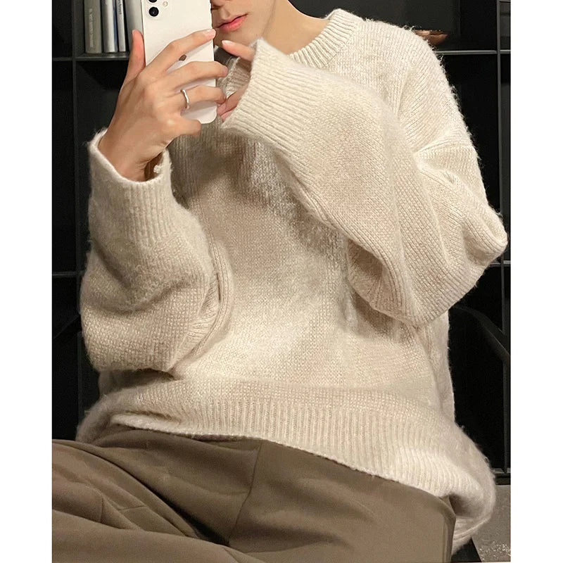 Winter Thick Sweater Men Warm Fashionable 3-color Knitted Pullover Men Korean Loose Long Sleeve Sweater Mens Jumper Clothes