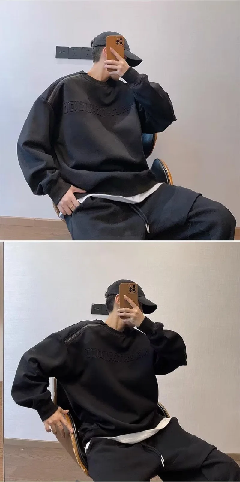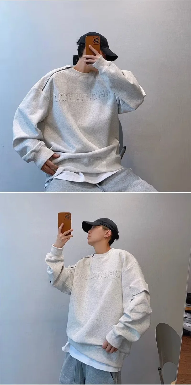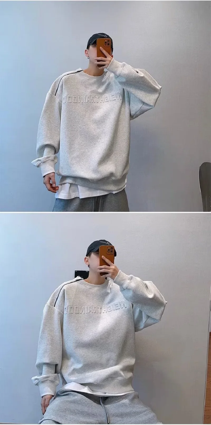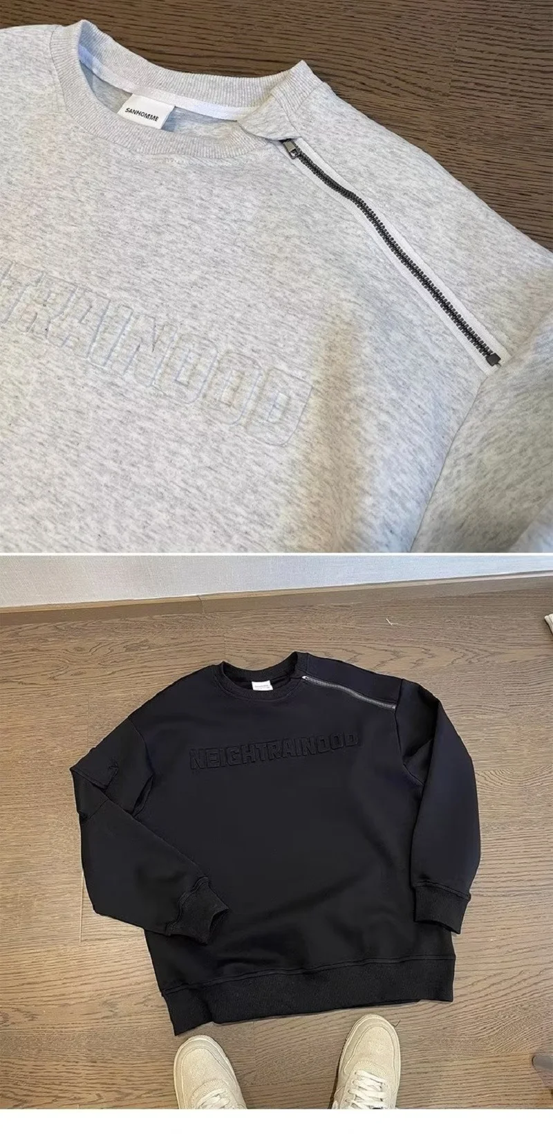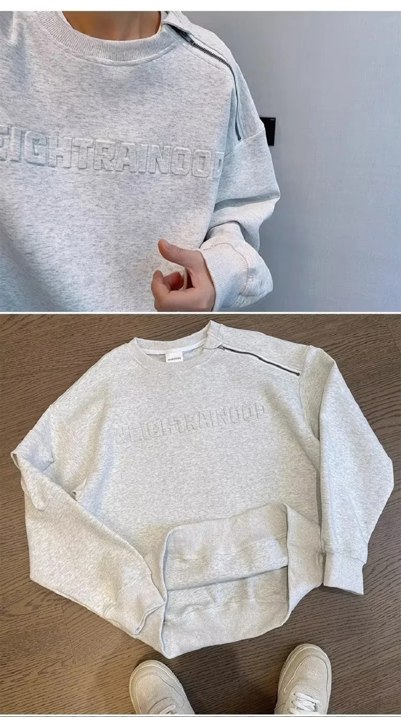 Y2k Spring Autumn Fashion Loose Couple Off Shoulder Steel Print Hoodie Raised Letters Zipper Round Neck Hoodie Ins Men Women Top