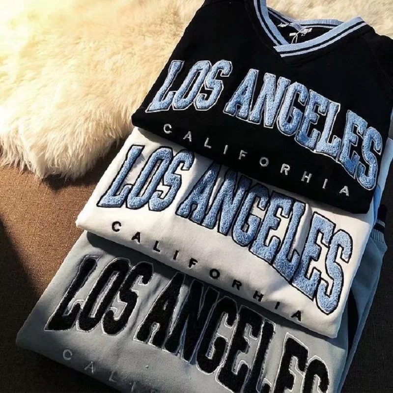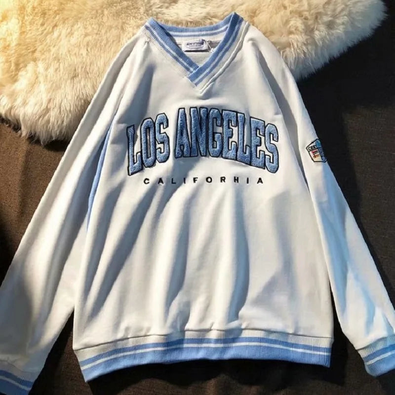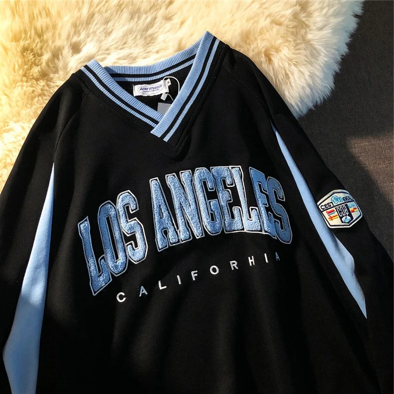 Y2k Spring Autumn Ins American Retro V-Neck Fried Street Letters Hoodie Men Women Tide Couples Wear All Loose College Style Tops