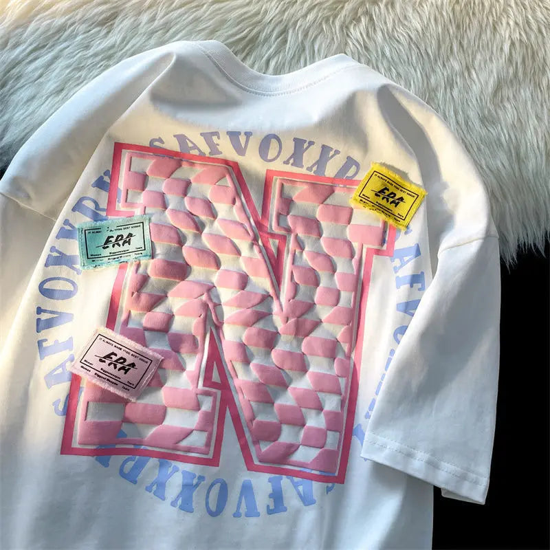 American Trendy Sweet Cool Hot Girl Couple Outfits Loose Versatile Lazy Retro Cotton Short-sleeved T-shirt Men Women Aesthetic