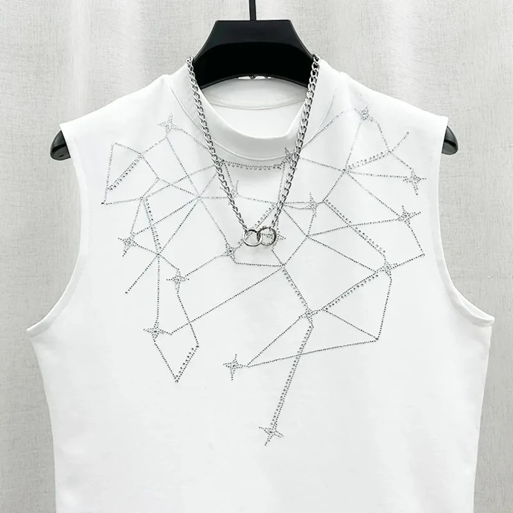 Mens Vest Personalized Heavy Industry Hot Stamping Diamond Starry Vest Summer Casual Sports Sleeveless Top Men's Clothing