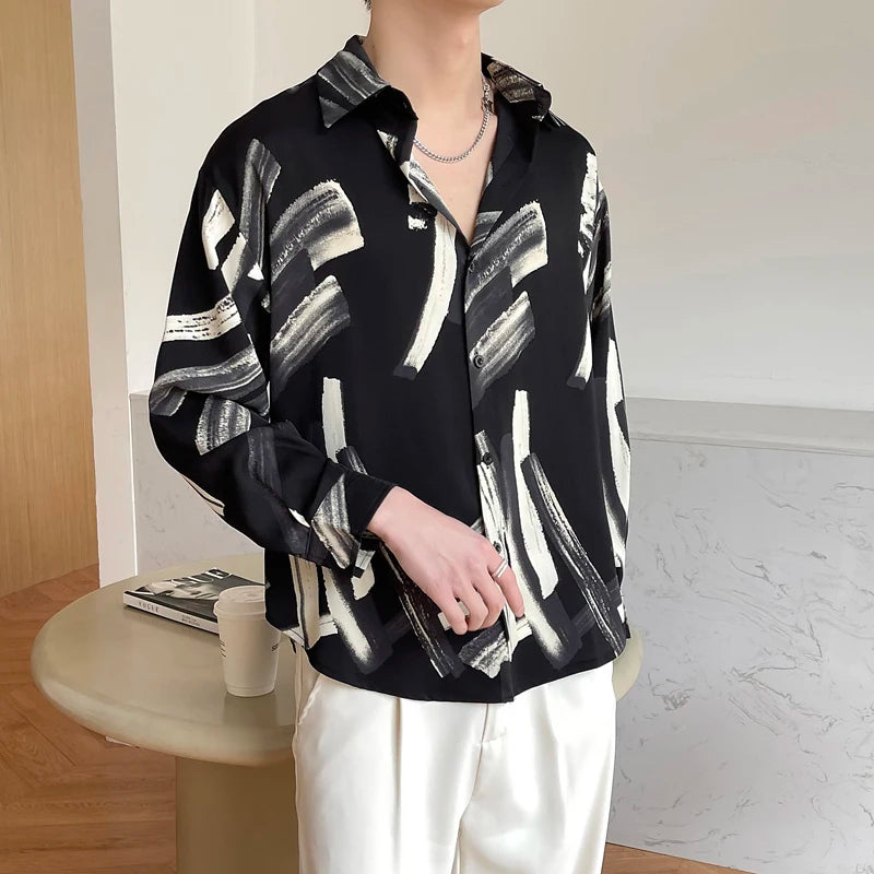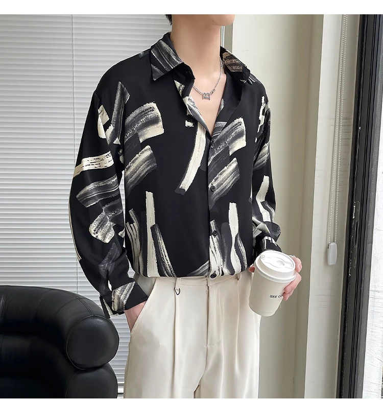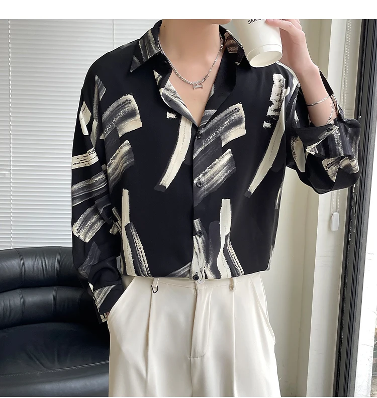 Slim Fit Long Sleeve Printed Shirt Men Comfortable Trendy Fashion Youth Casual Stylish Top 2025 New Design Hot Sale Modern