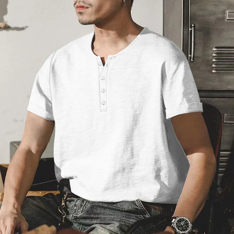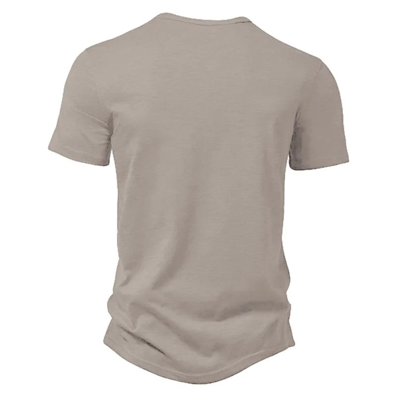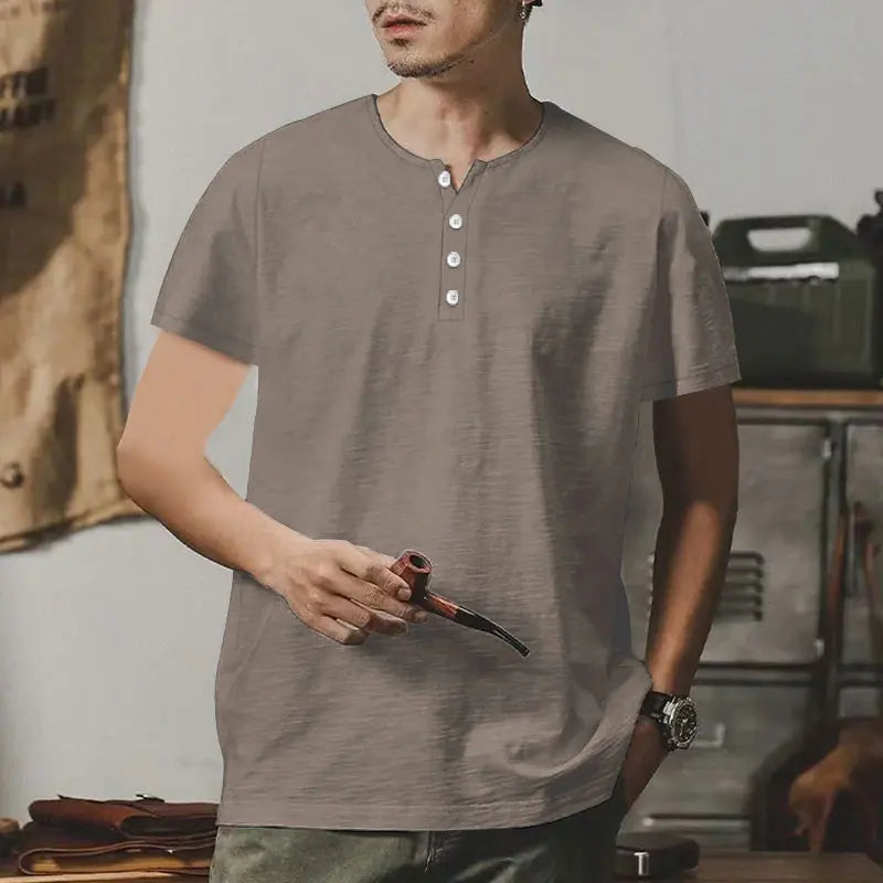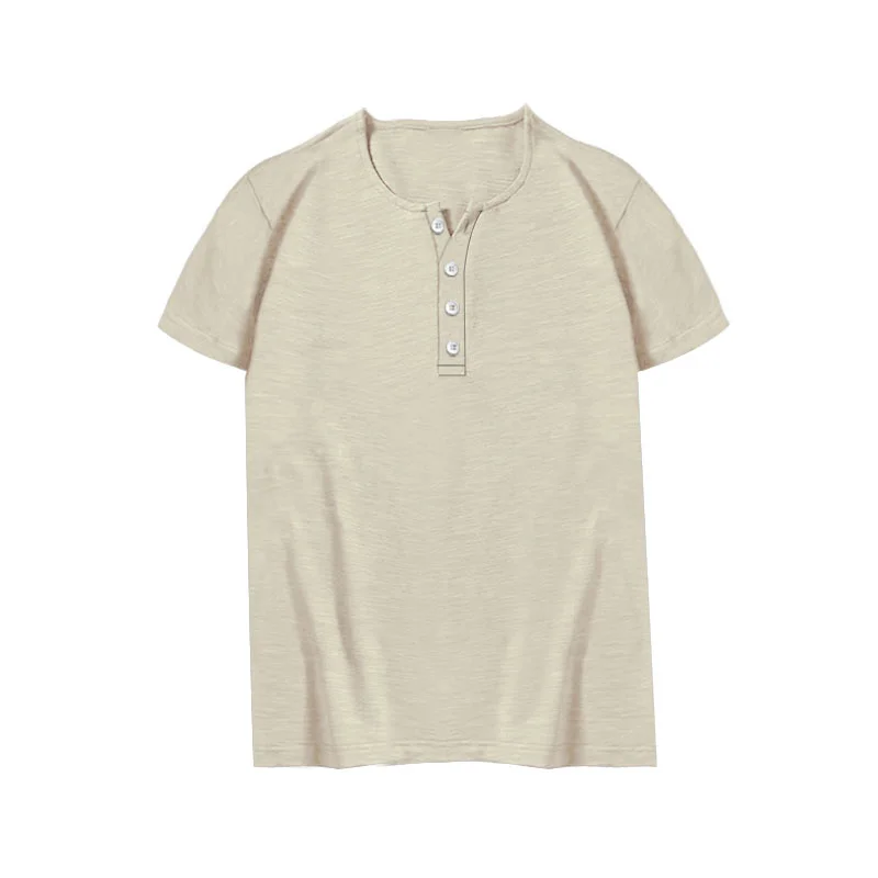 Summer Fashion T-shirt Men's Casual Solid Color Button Henry Shirt European And American Style Trend Men's Clothing Hot Sale