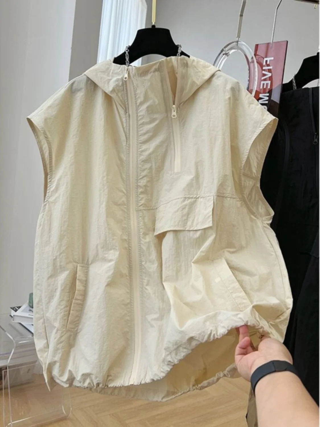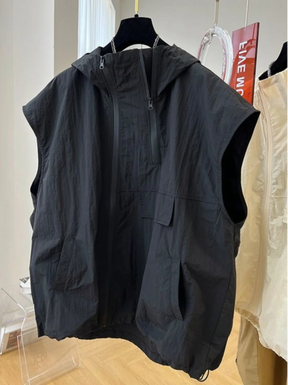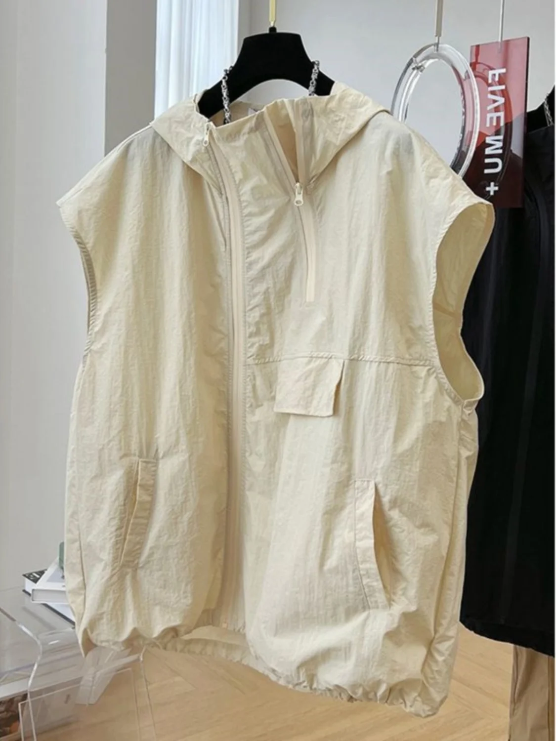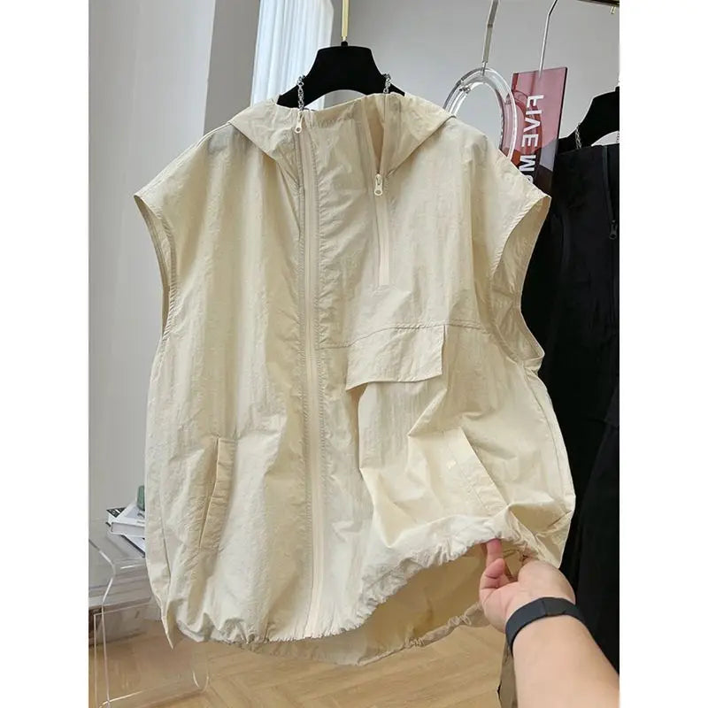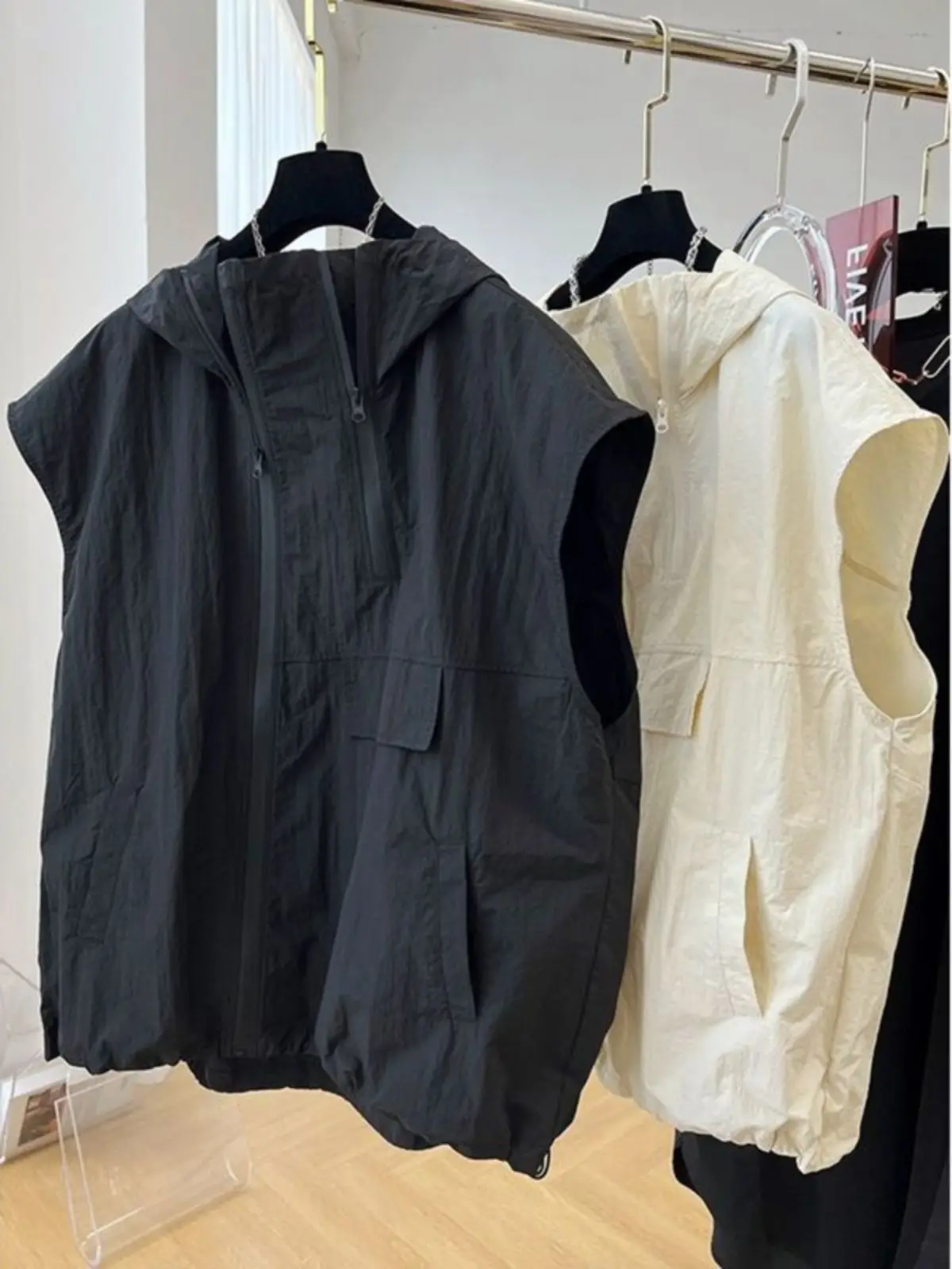 American Black Sleeveless Vest Thin Baseball Uniform Jacket Women Korean Hip Hop Summer Zipper Outer Wear Thin Vest Horse Clip
