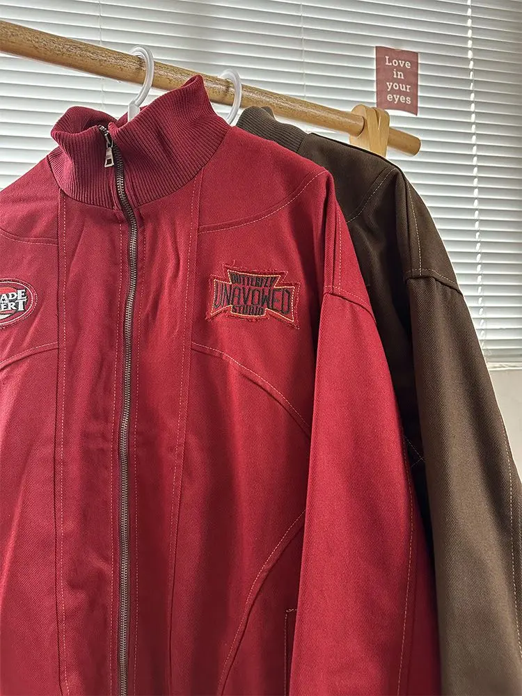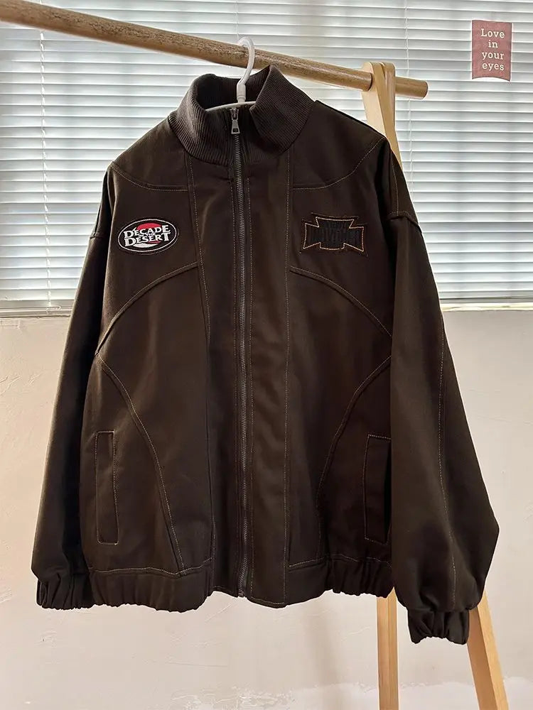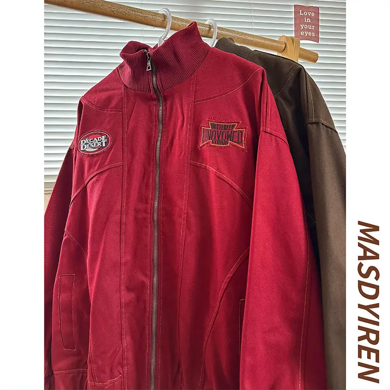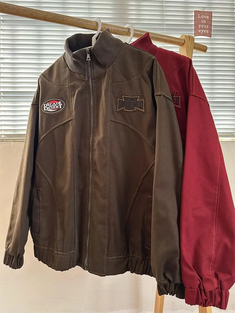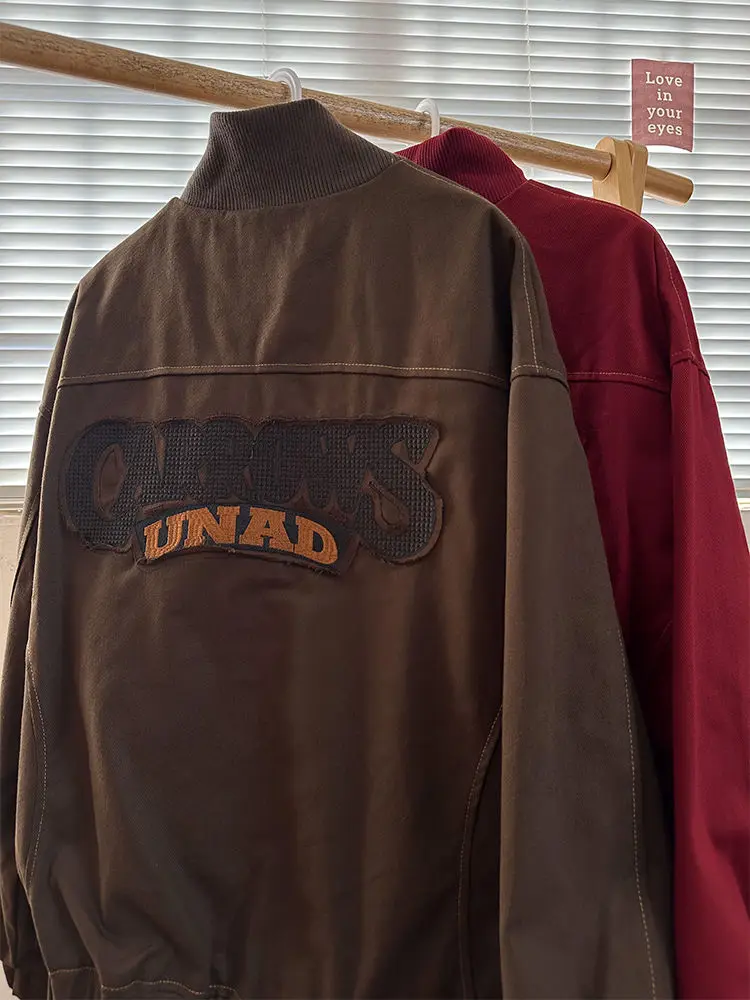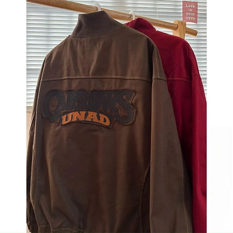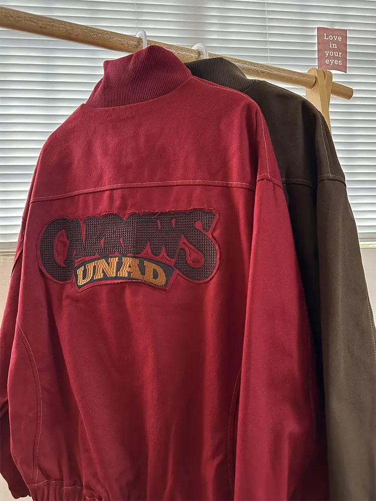 American Retro Trend College Style Patch Embroidered Lapel Jacket Men Women Fashion Loose Casual Versatile Jacket Trendy Tops