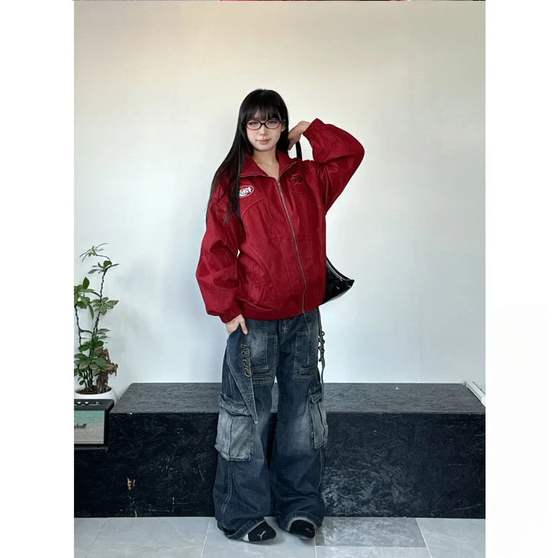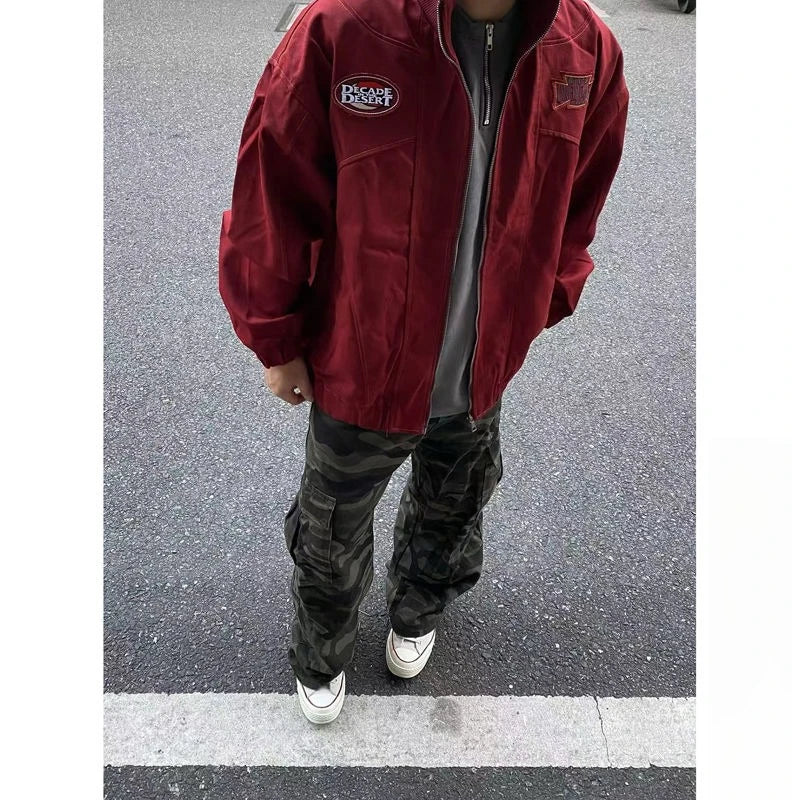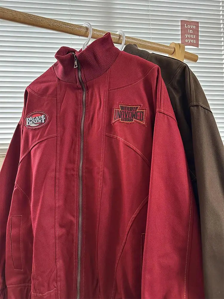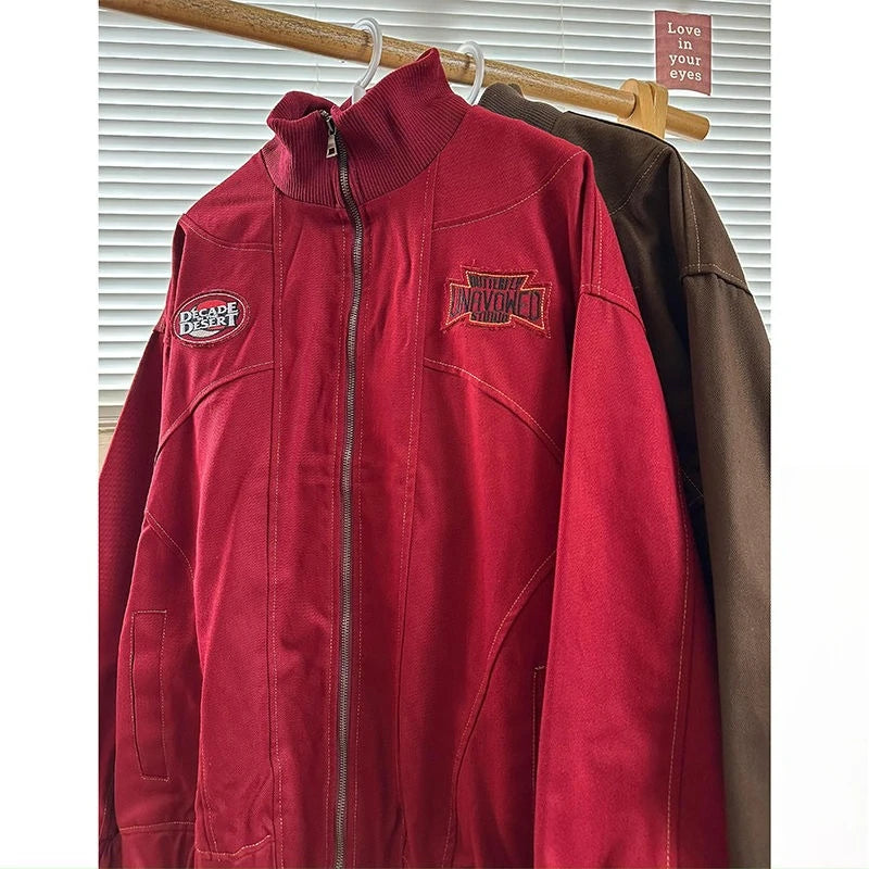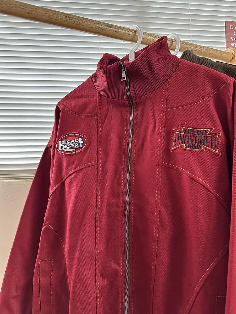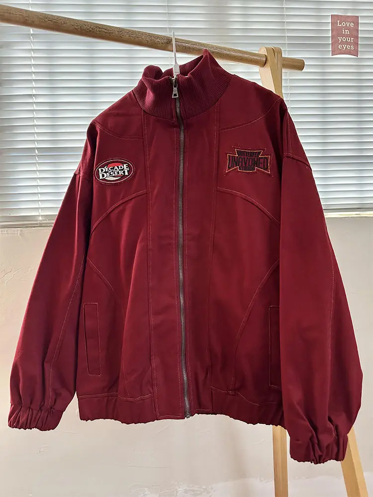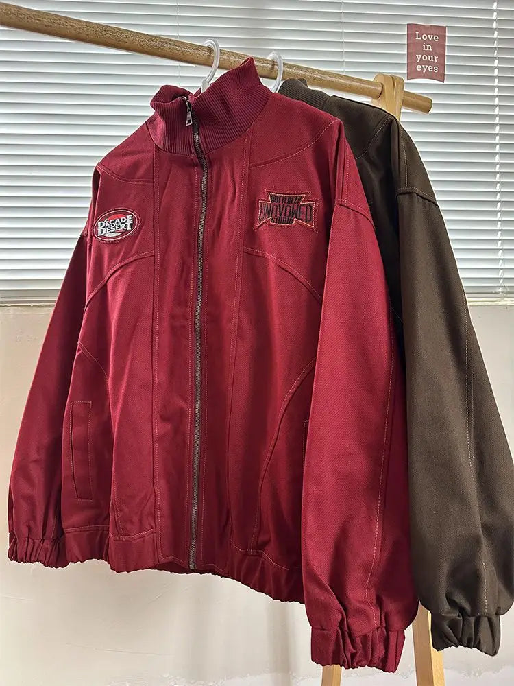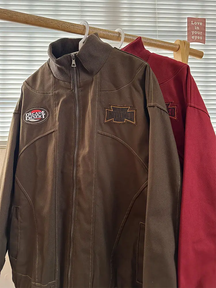 American Retro Trend College Style Patch Embroidered Lapel Jacket Men Women Fashion Loose Casual Versatile Jacket Trendy Tops