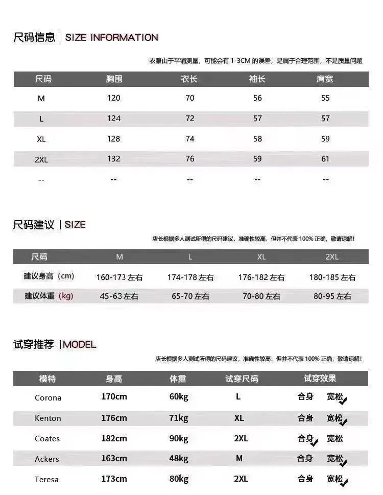 Size 2XL: weight 65kg-70kg, height 175-180cm