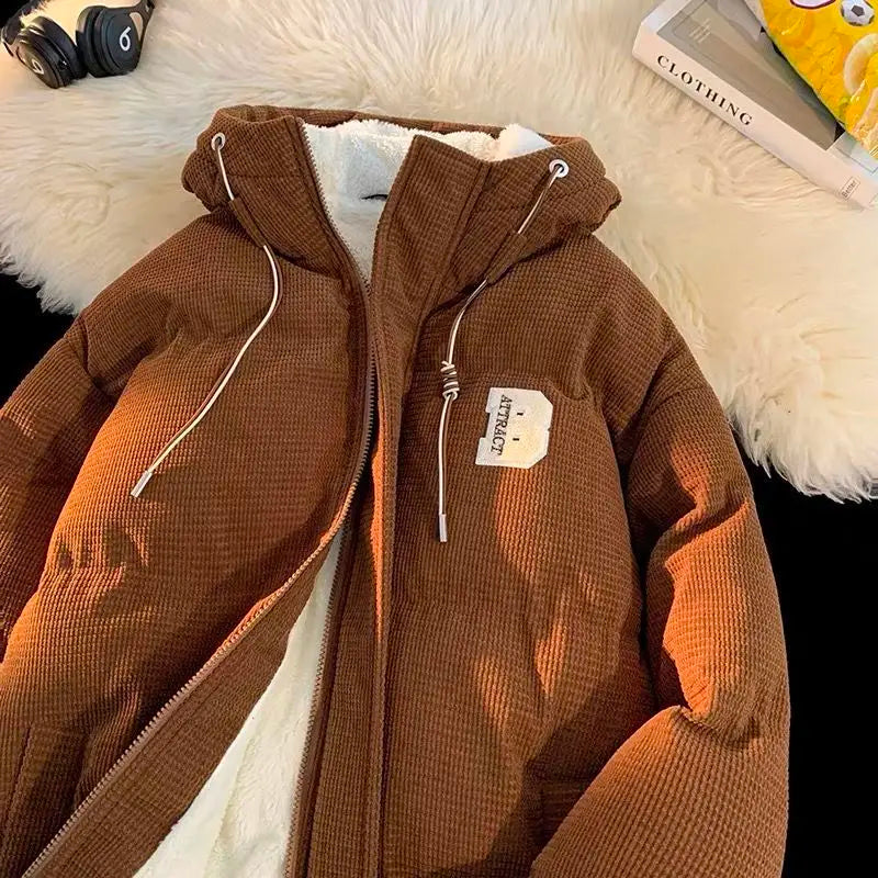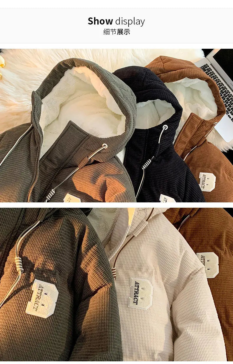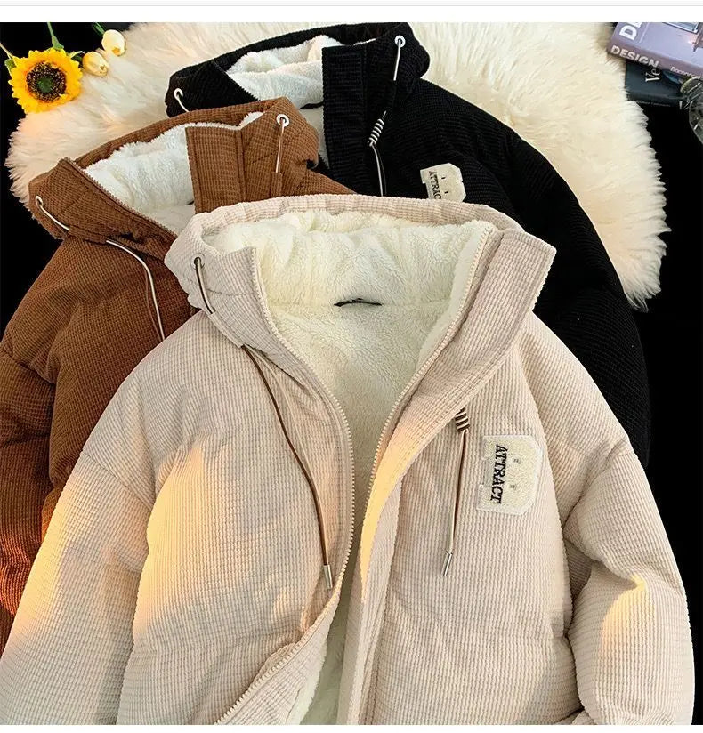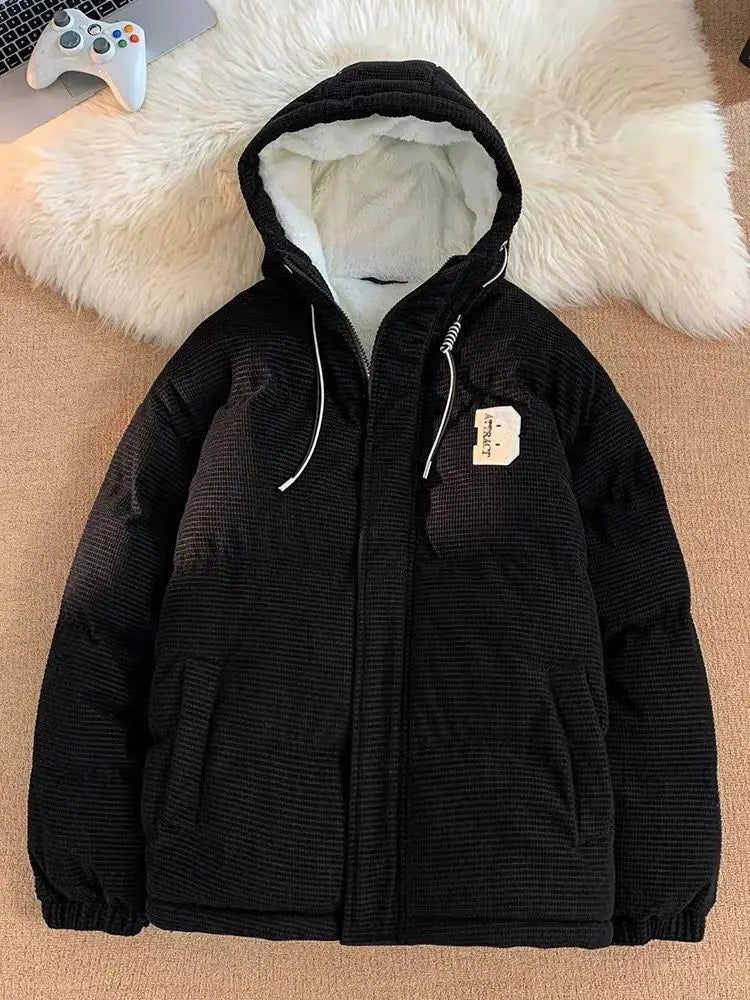 autumn and winter street fashion corduroy thick jacket for men and women couple personalized loose retro casual Harajuku