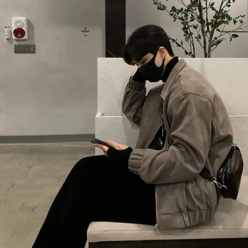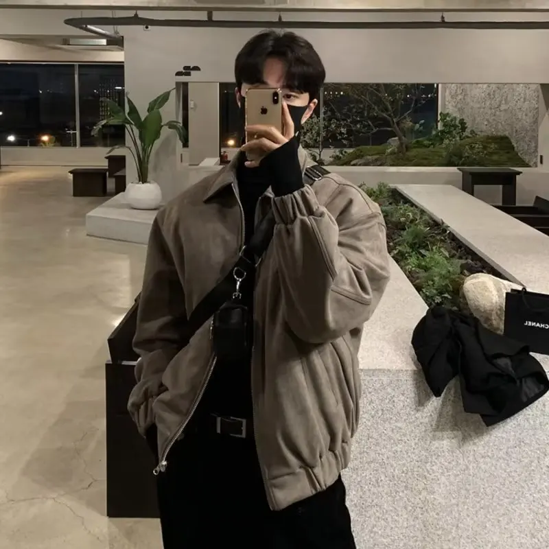 Autumn Suede Jackets Man Fashion Korean Style Jacket Lightweight Casual Turn-down Collar Zipper Tops Coats Slim Men Jackets