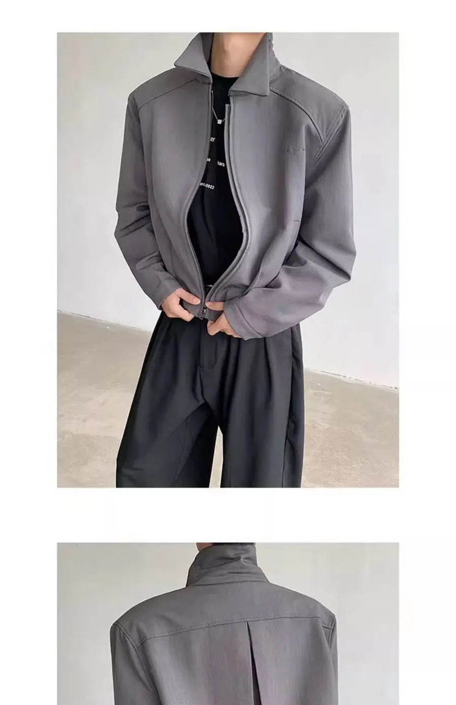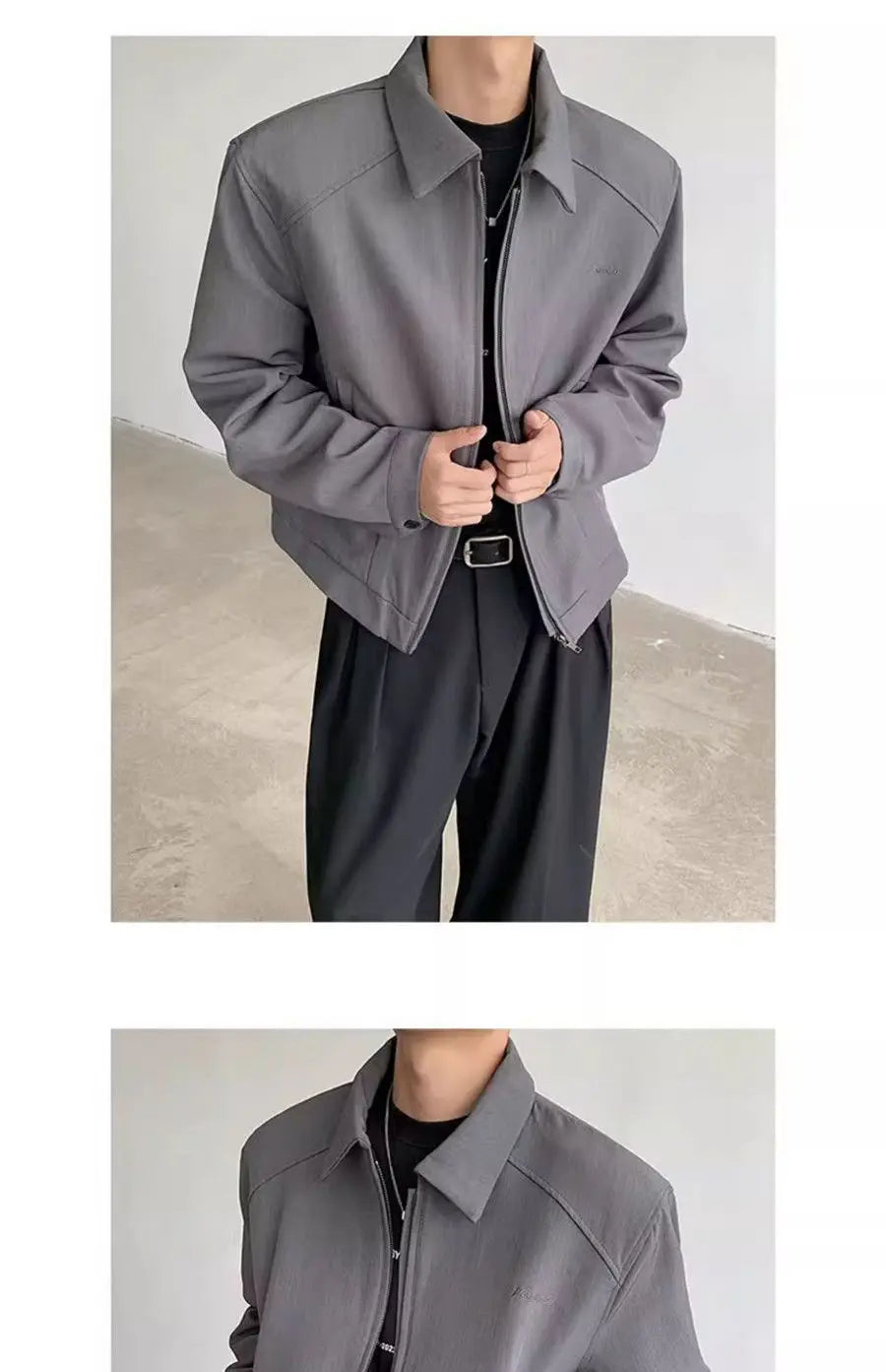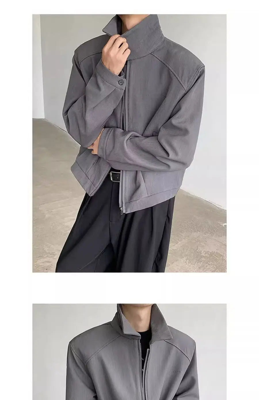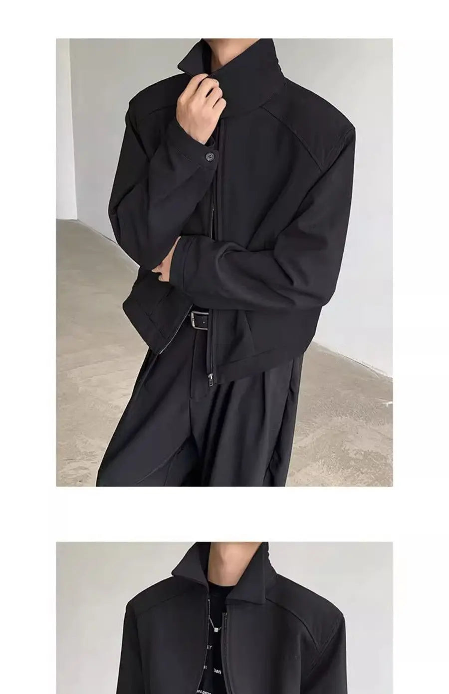 Black Short Autumn Suit Jacket Male College Preppy Wearing American Baseball Uniforms with High-end Shoulder Pad Jacket Chic