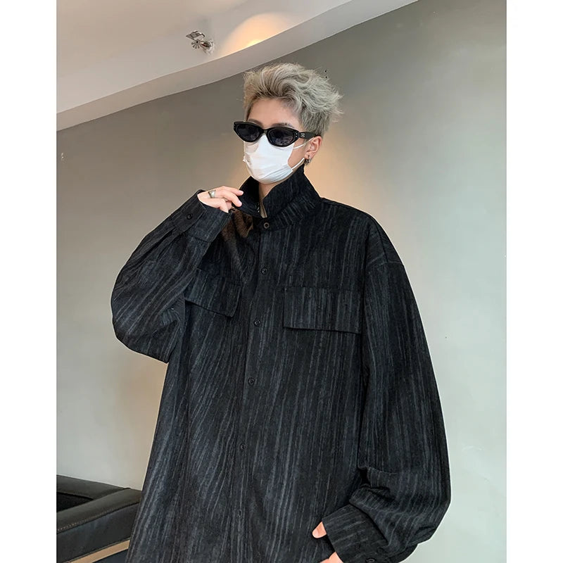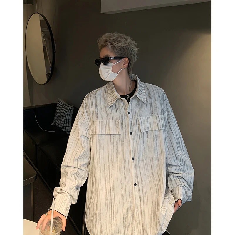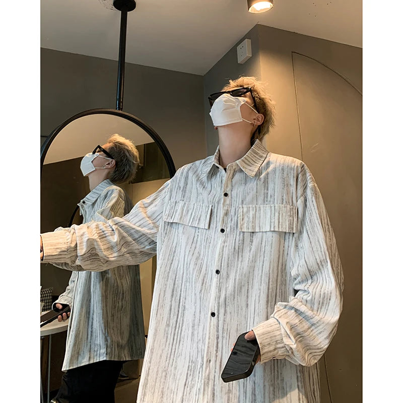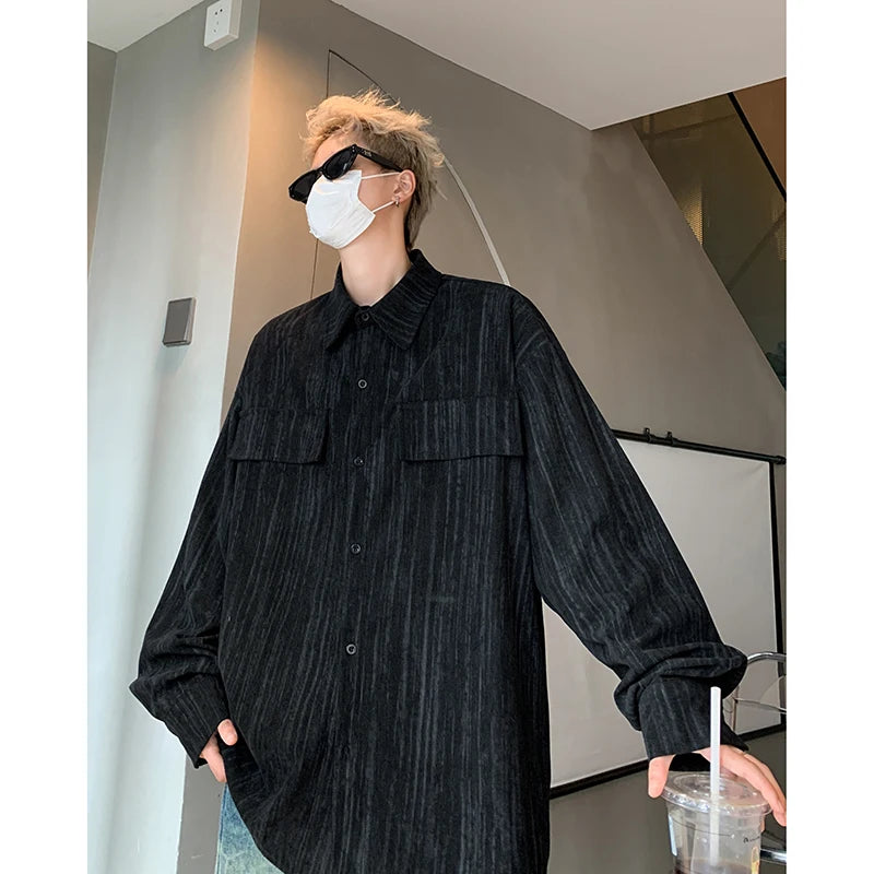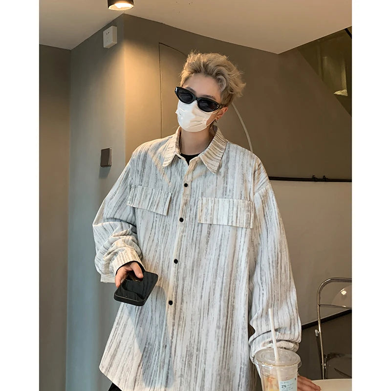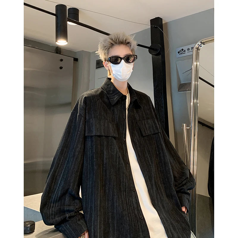 Corduroy Printed Work Shirts Men's Single Breasted Casual Jacket Coats Men Korean Fashion Cityboy Long-sleeve Simple Shirt