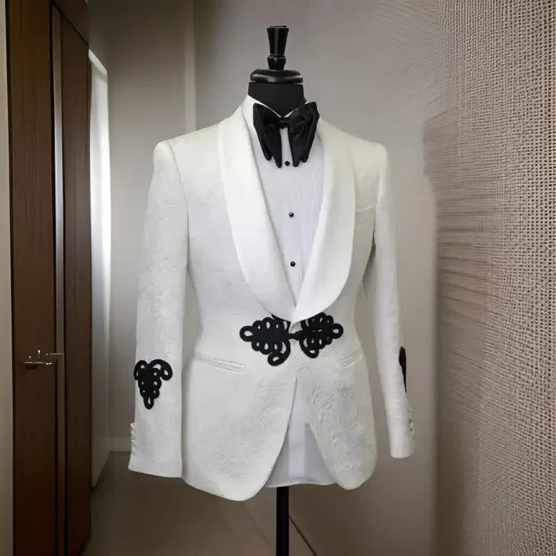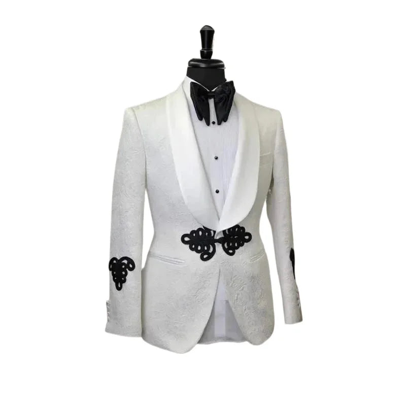 Floral Men Suit Jacket with Mandarin Buttons 1 Pc Fashion Wedding Blazer Slim Fit Shawl Lapel African Style Male Suit Jacket
