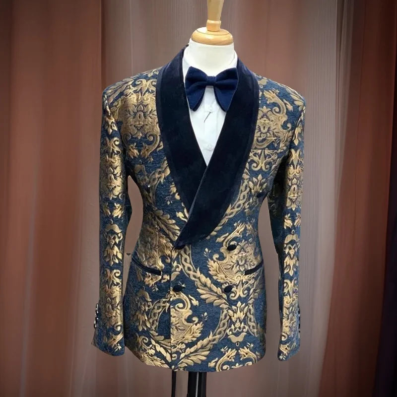 Floral Slim Fit Blazer for Men Suit 1 Piece Smoking Wedding Jacket with Velvet Shawl Lapel Double Breasted Male Fashion Coat
