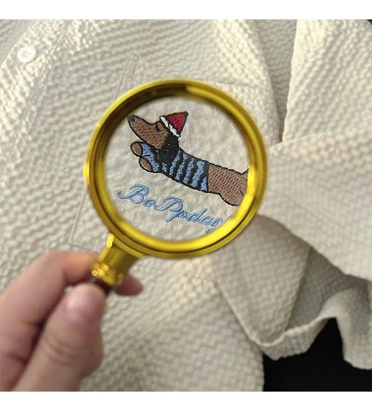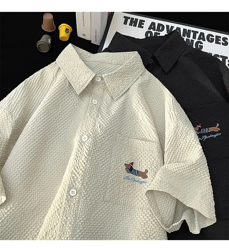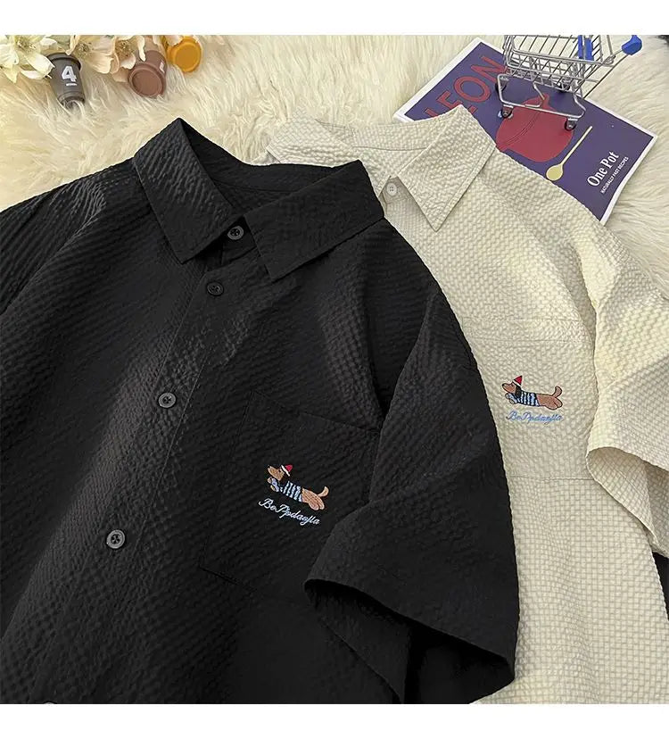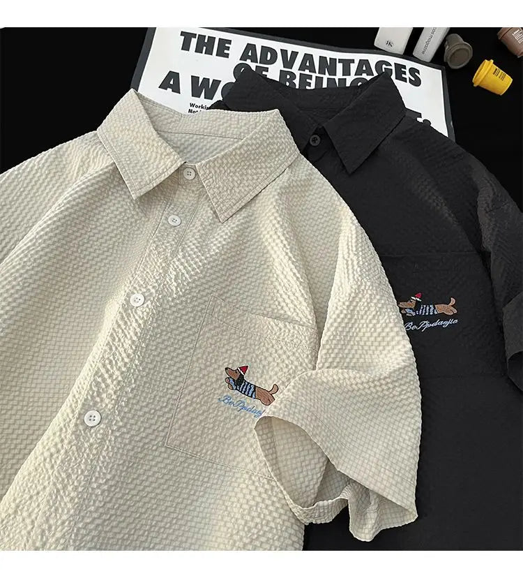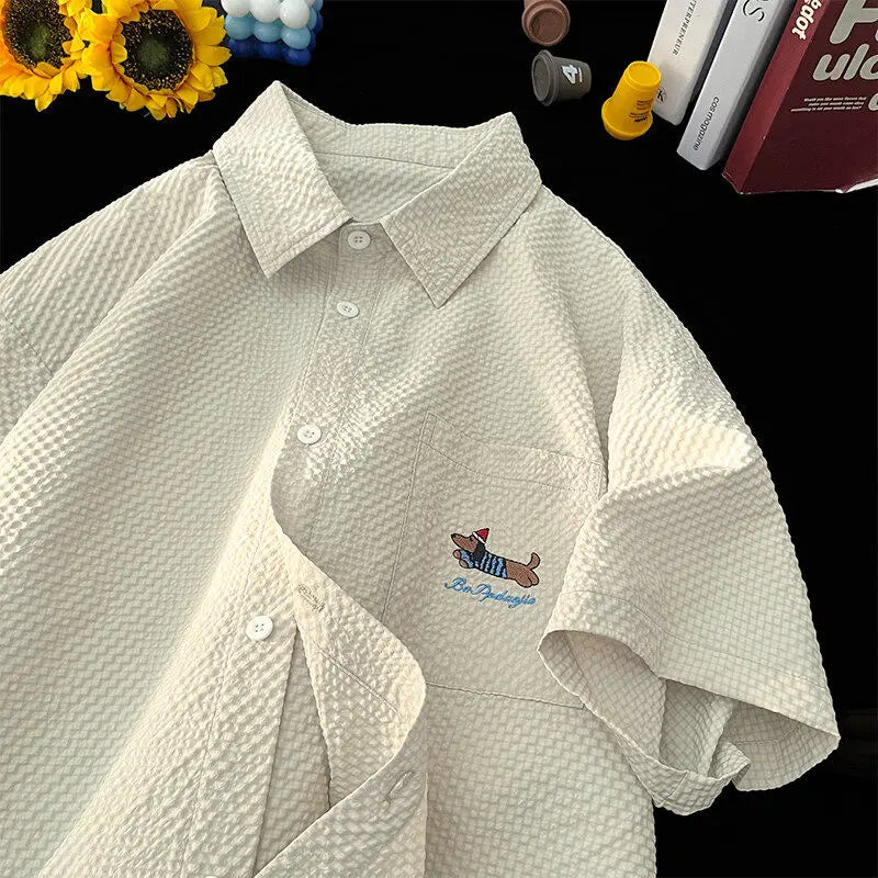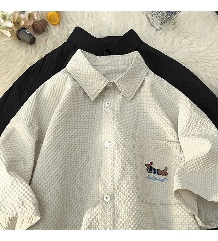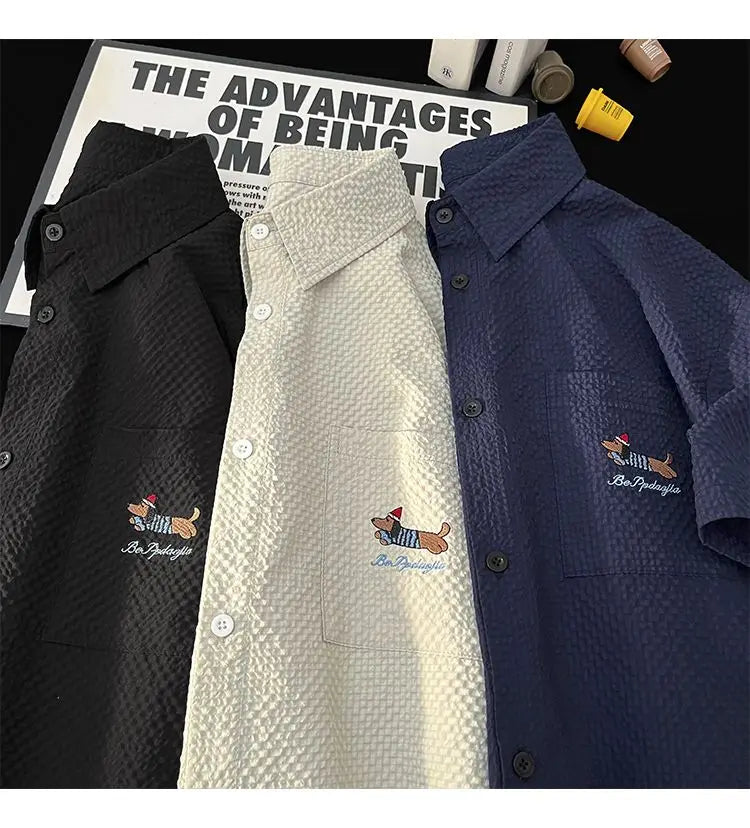 Gmiixder Bubble Yarn Embroidered Shirt Short-sleeved Summer Thin Breathable Quick-drying Beach Shirt Couple Half-sleeved Jacket