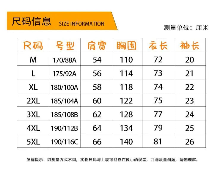 Size 2XL: weight 65kg-70kg, height 175-180cm
