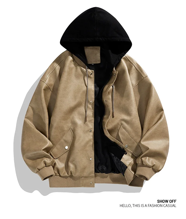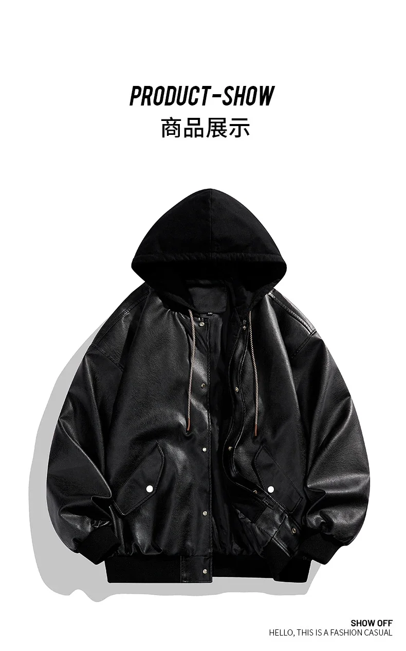 Hoodie Vintage Faux Leather jackets Trendy Cool Black Faux Suede PU Leather Jackets Men's hip hop Style Luxury Leather Clothes