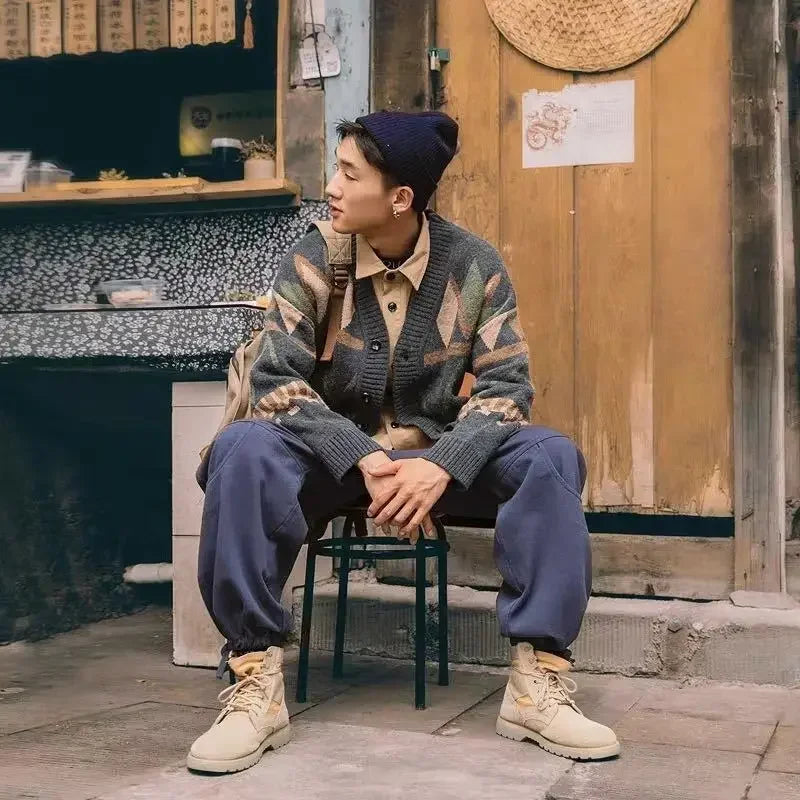 Knitted Sweaters for Men Graphic Man Clothes Japanese Retro Coat Cardigan Jacket V Neck Argyle Plus Size Cotton Winter 2024 X S