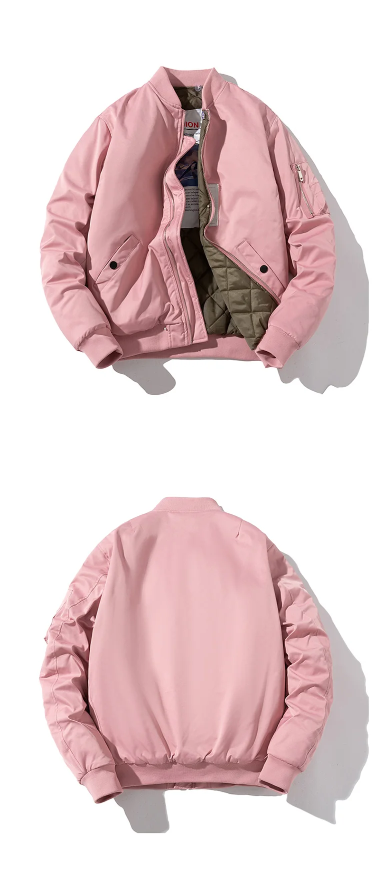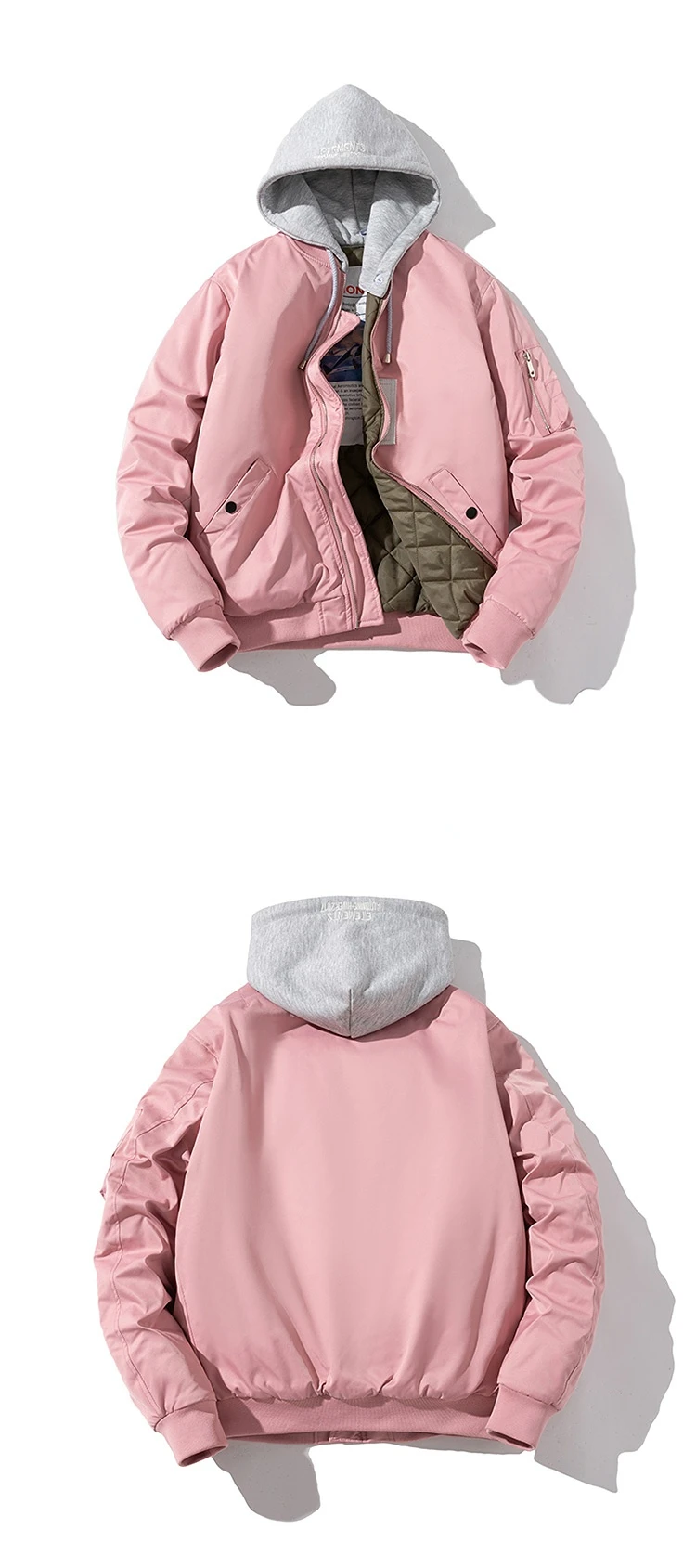 Men Bomber Jacket Women Solid Autumn Winter Pilot Jacket Fashion Vintage Hooded Baseball Coat Casual Windbreak Red Pink Burgundy