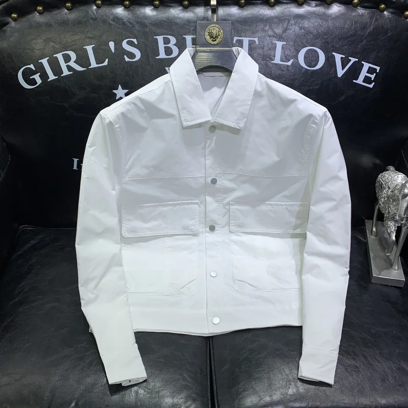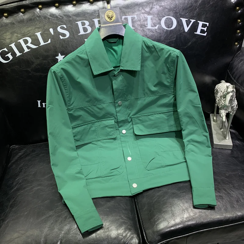 Men Jackets Pure Color Cropped Japanese Style Pockets Simple All-match Workout Advanced Lapel Harajuku Single Breasted Vitality