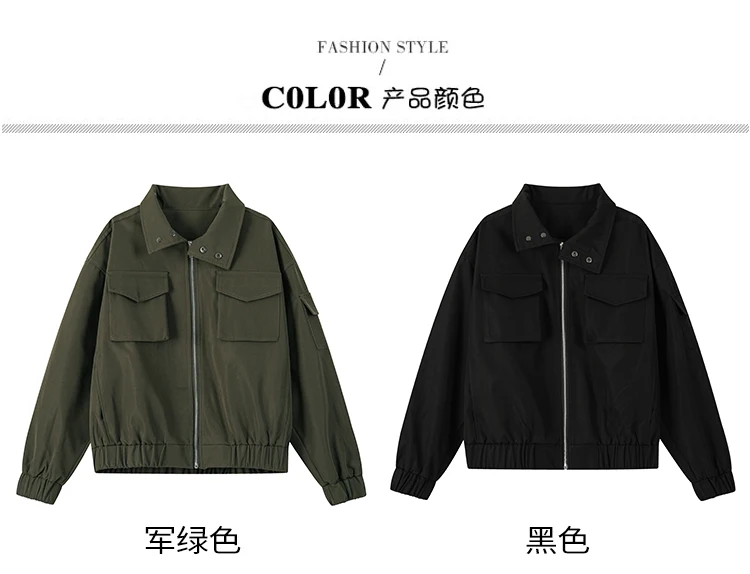 Men's Jacket Spring Double Pockets Street Lapel Jacket Solid Color Zipper Jackets Fashion Male Coats