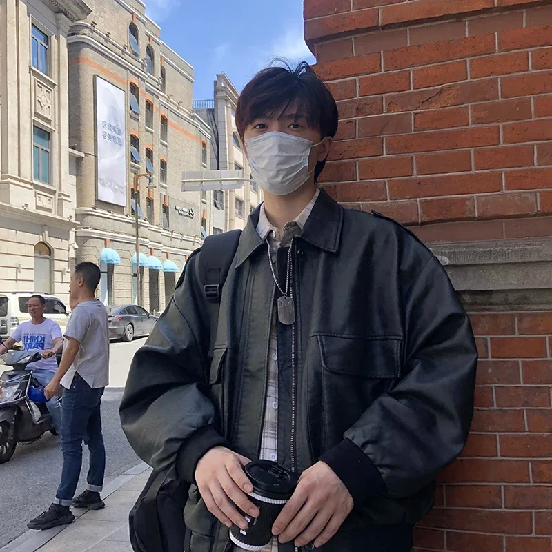 Mens Jacket Japanese Style Autumn Daily Casual Rib Sleeve Warm Streetwear All-match Outerwear Solid Color Multi Pockets Retro