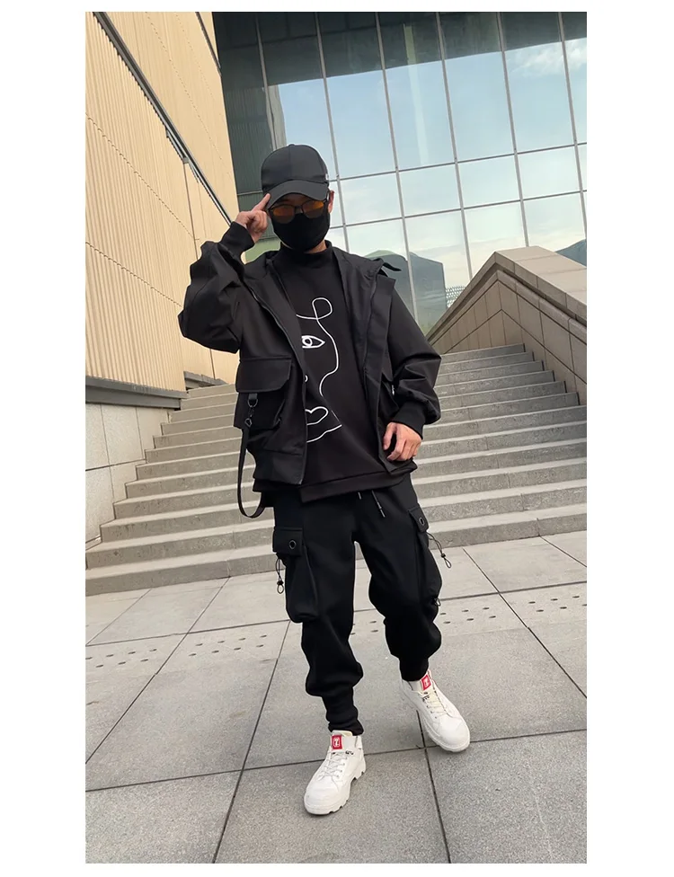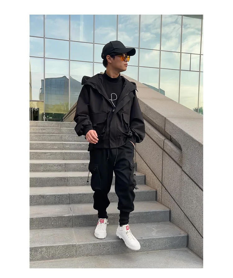 Outdoor Jackets Men Hooded Moto Japanese Style Handsome Pockets All-match Fitness High Street Leisure Autumn Safari Boyfriend