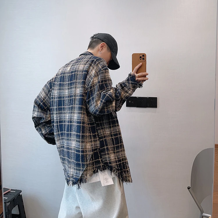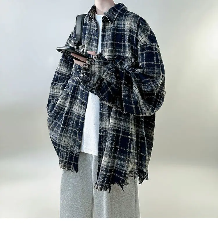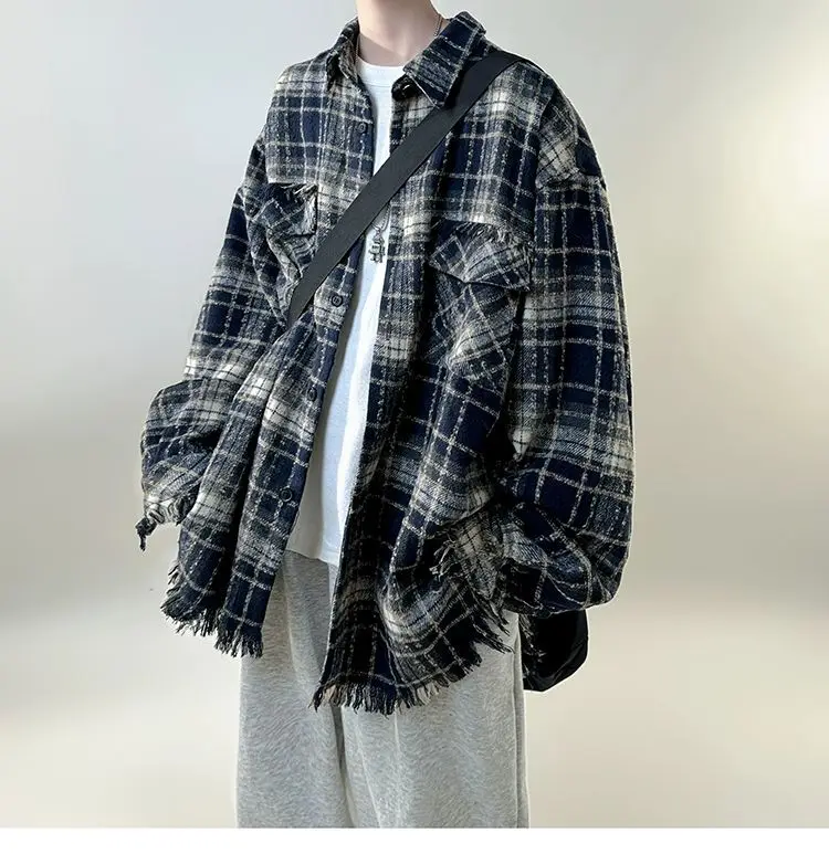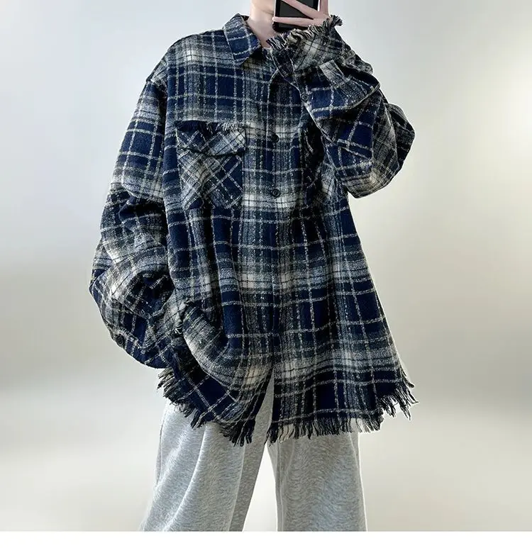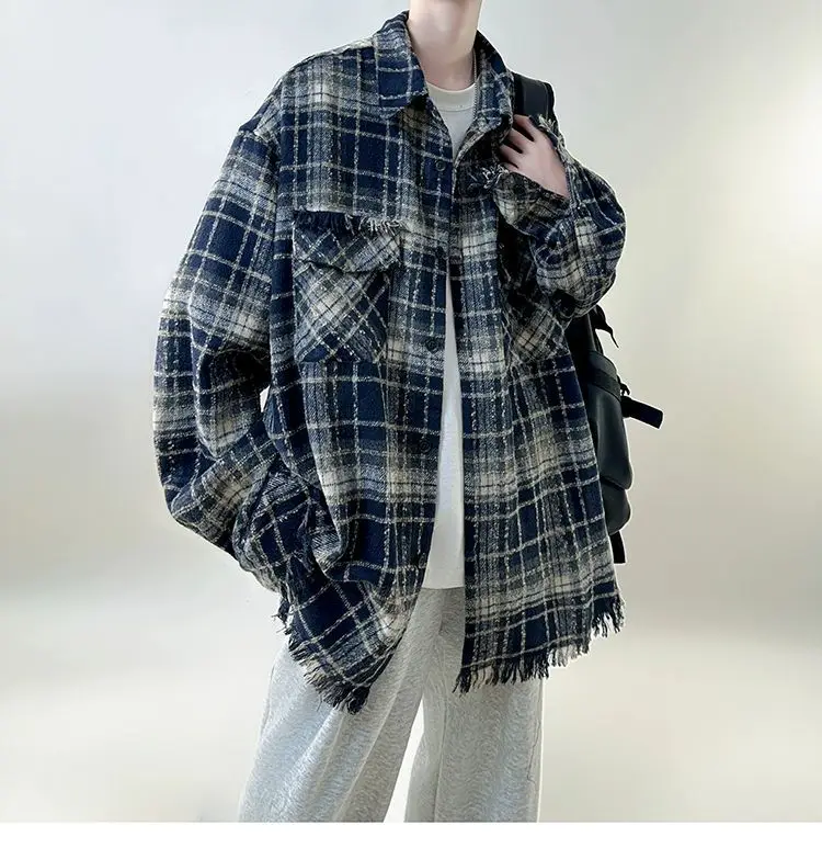 Raw Edge Jackets Men Tassel Elegant Plaid Stylish Korean Style Handsome Classic Slouchy Temperament Advanced Autumn Streetwear