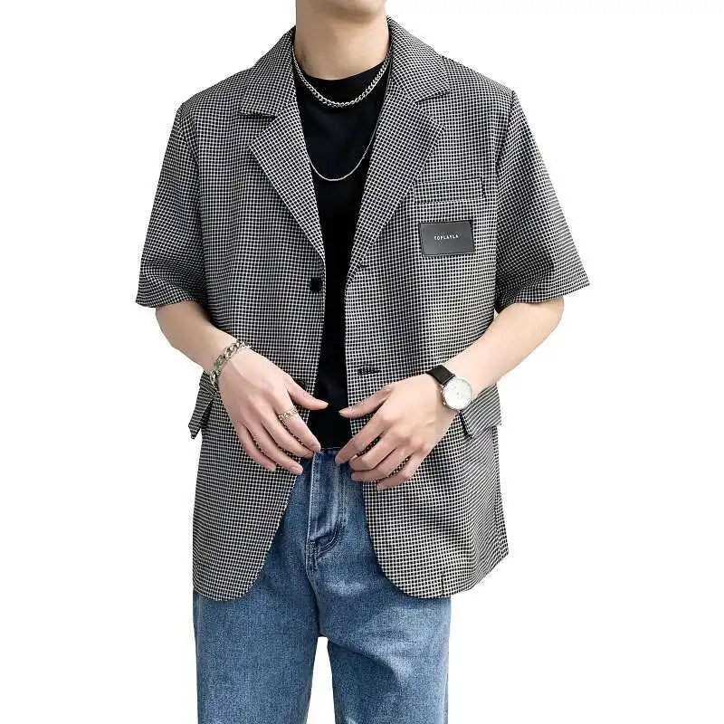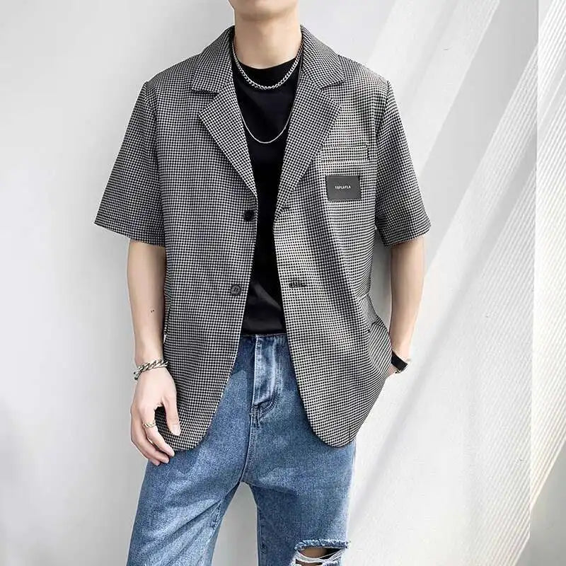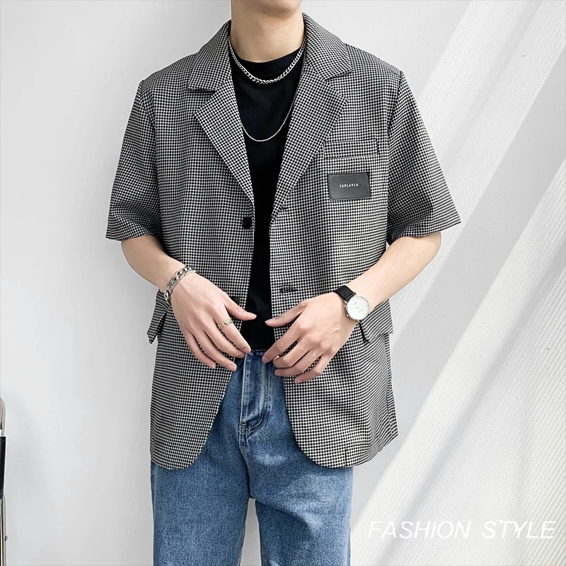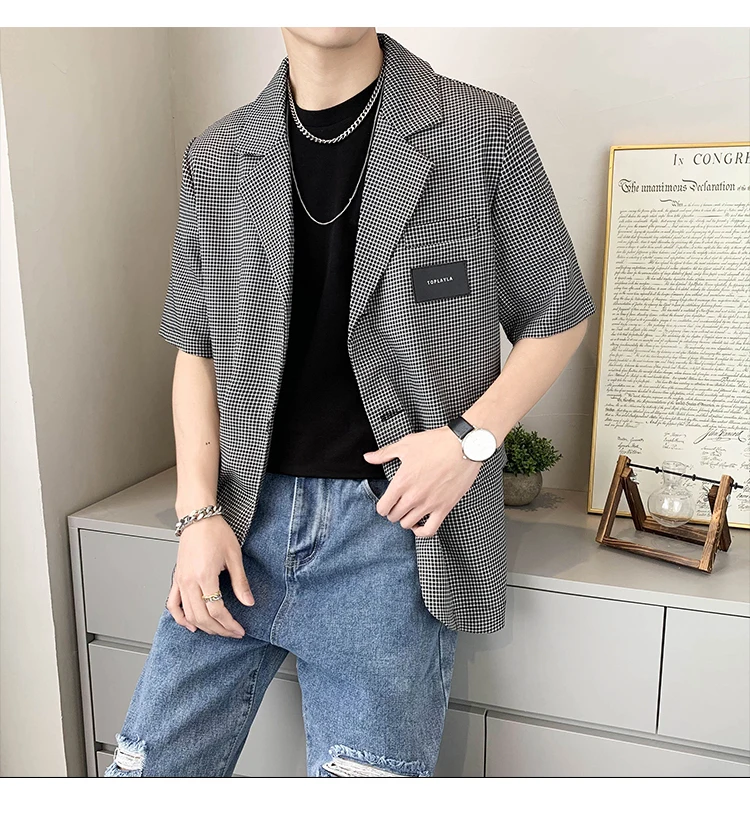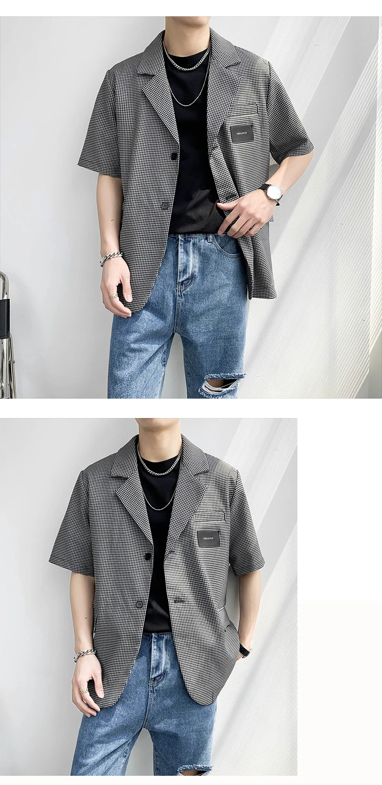 Summer Short Sleeved Blazer Men Fashion Society Mens Black Dress Jacket Korean Casual Suit Jacket Mens Office Formal Jackets