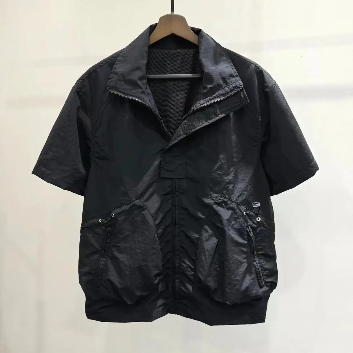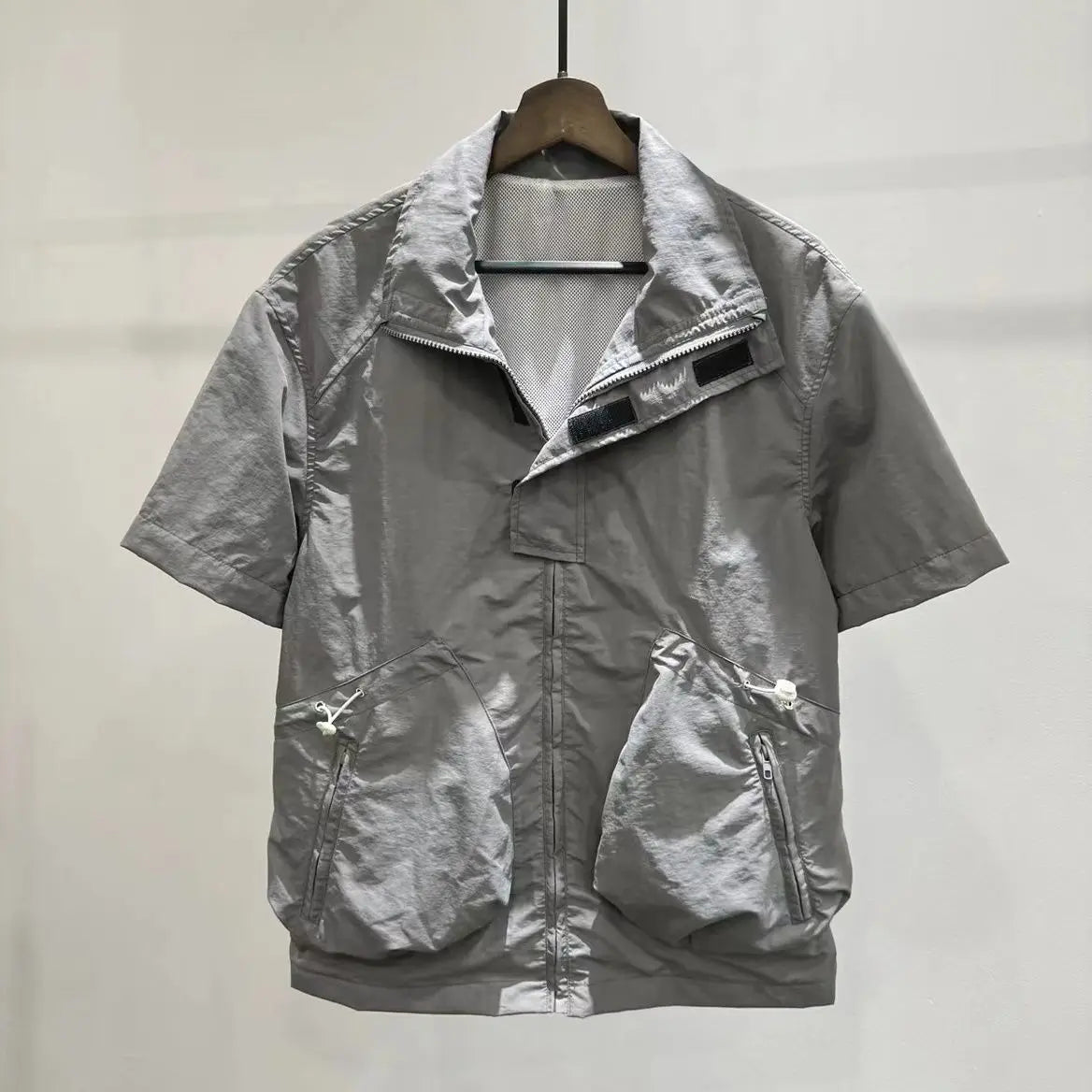 Workwear Lapel Shirt Men's Summer Three-dimensional Large Pocket Drawstring Short-sleeved Jacket Loose Casual Sports Shirt Top