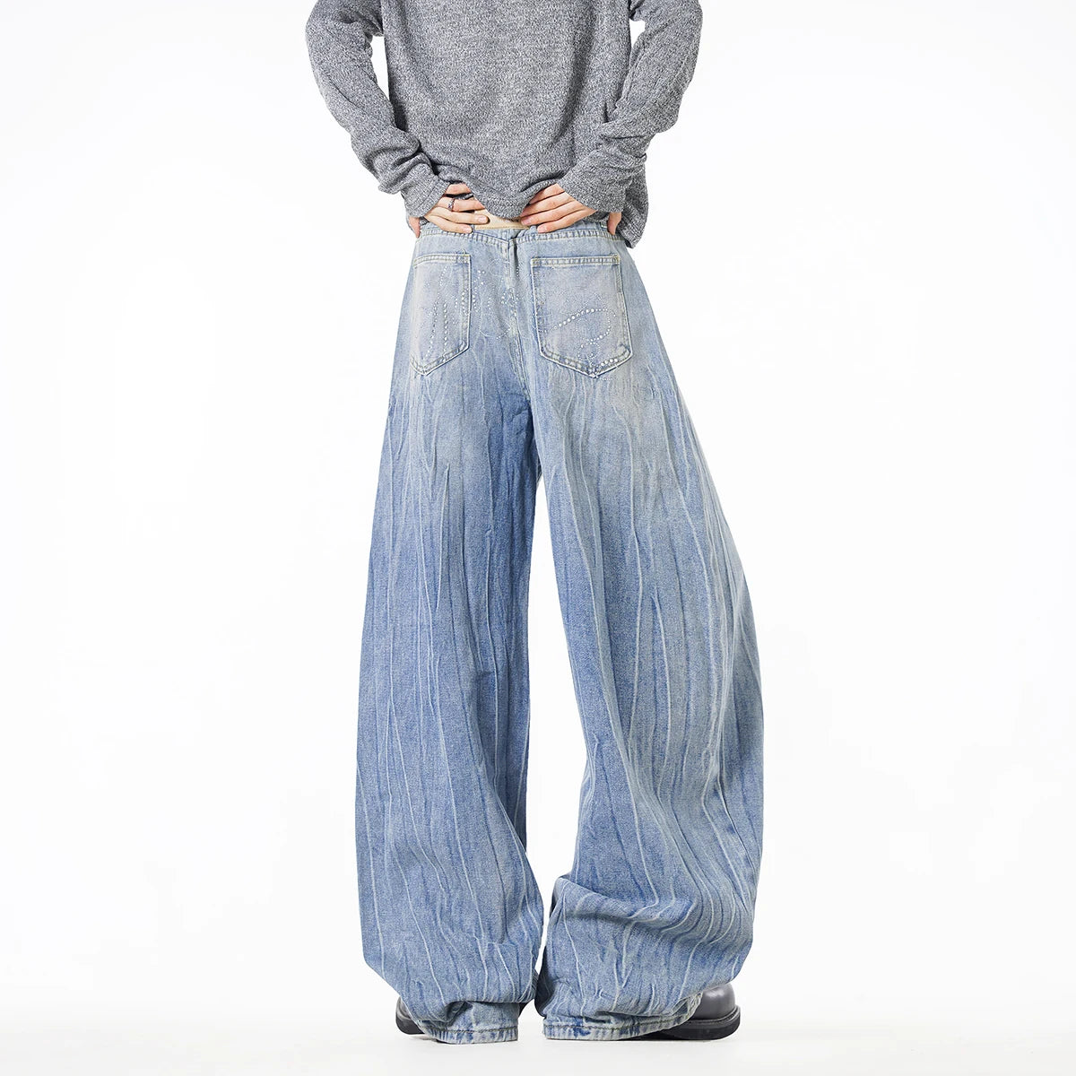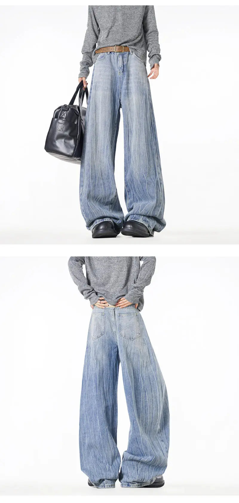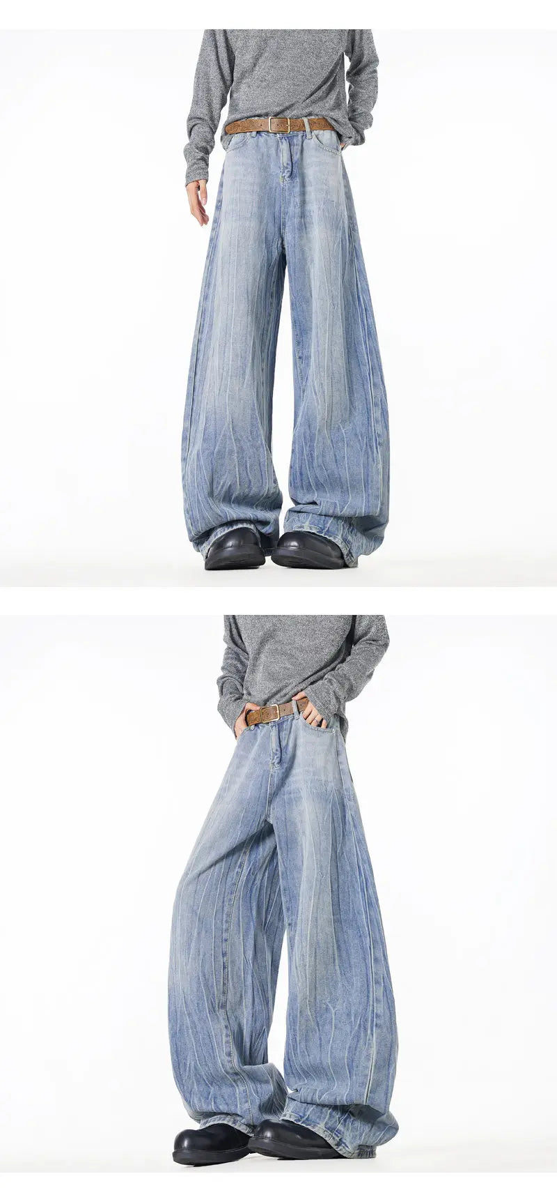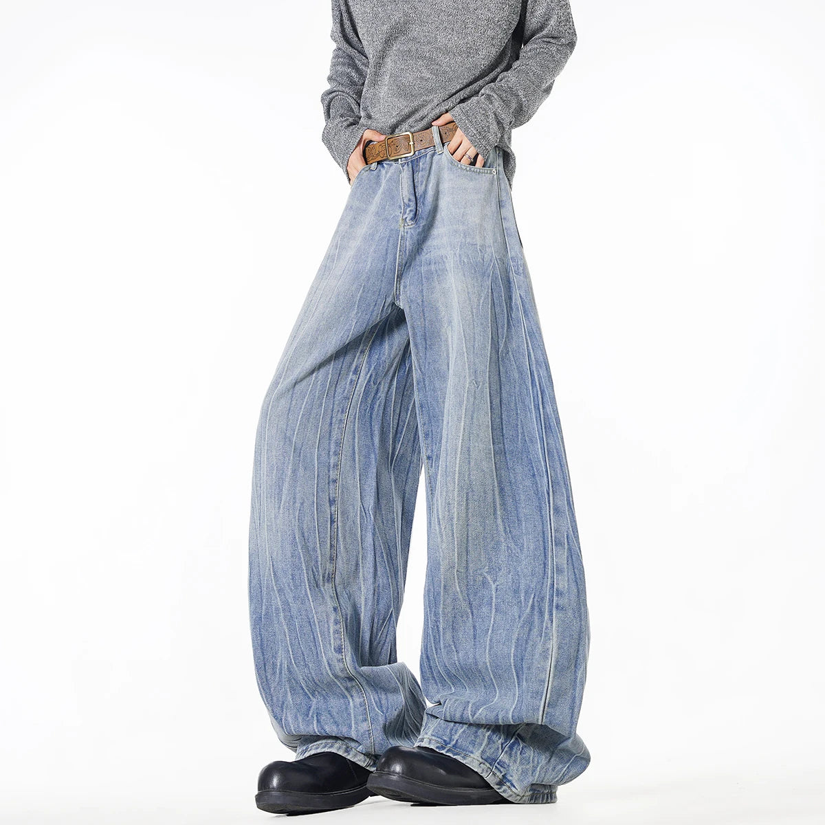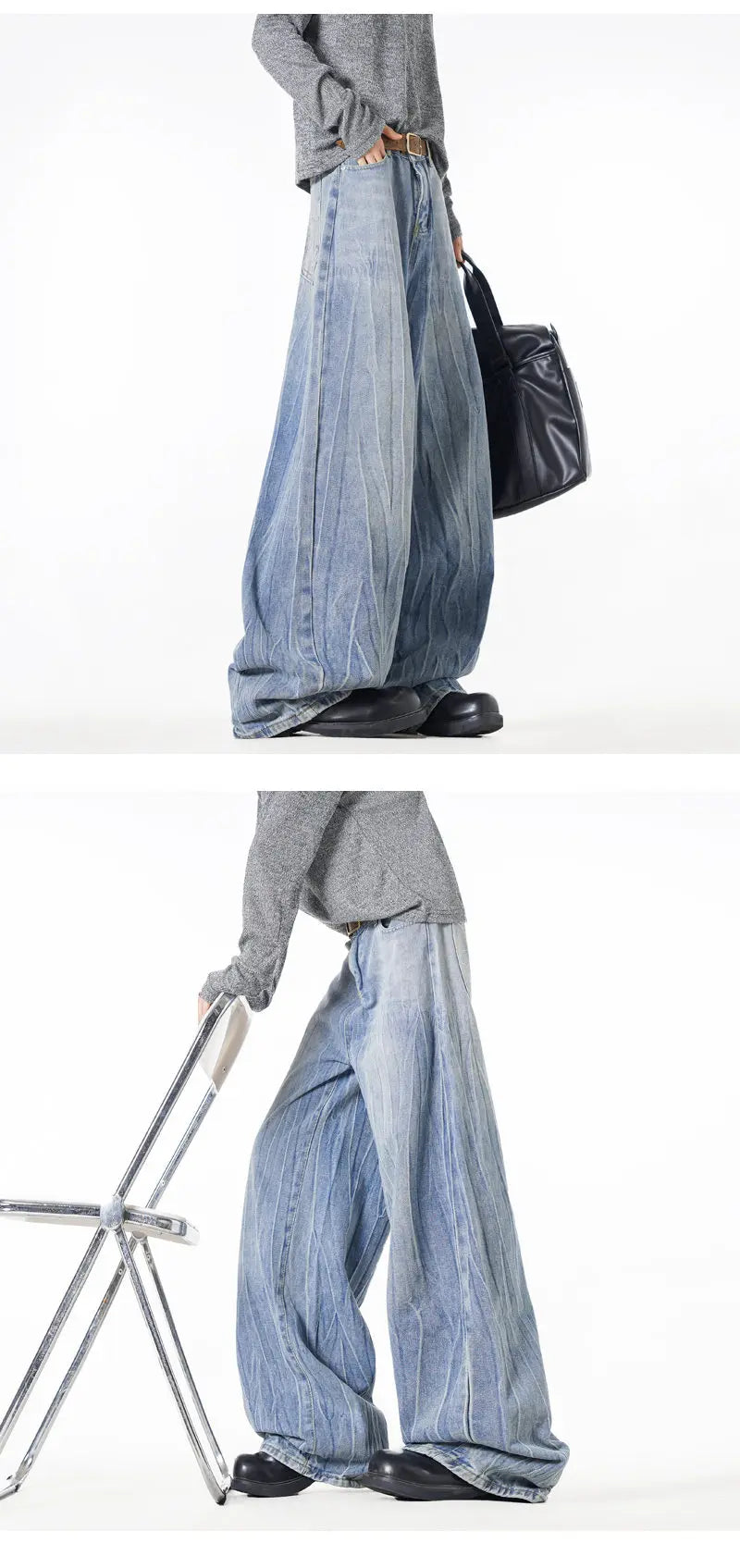 2025 New Men Wide Leg Jeans Loose Fit Light Blue Washed Denim Trousers High Quality Trendy Fashion Streetwear Hot Sale