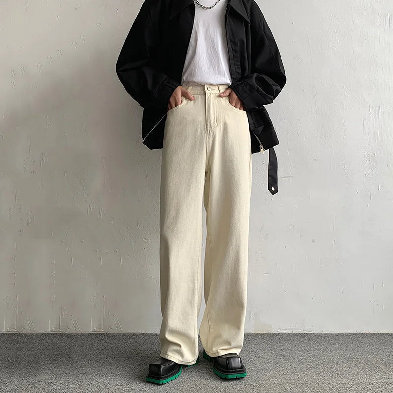 Baggy Beige Jeans Men Fashion Casual Oversized Wide Leg Jeans Men Streetwear Korean Loose Straight Denim Pants Mens Trousers