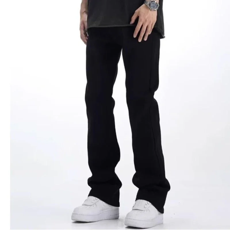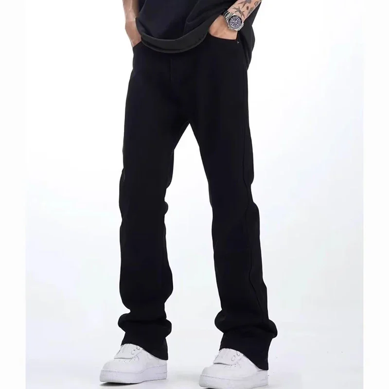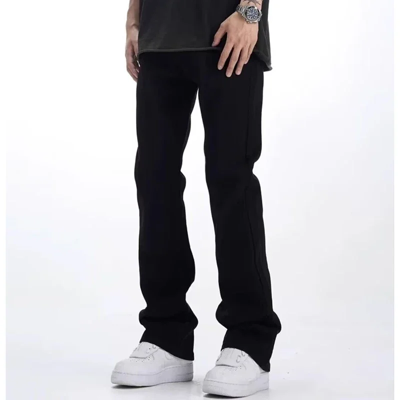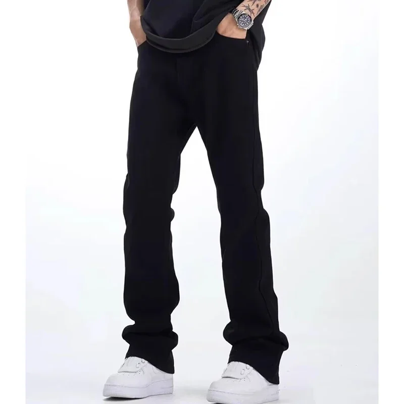 Man Trendy Solid Color Flare Pants Spring Summer Casual High Street Straight-Leg Jeans Micro-Flared Waist Slimming Effect