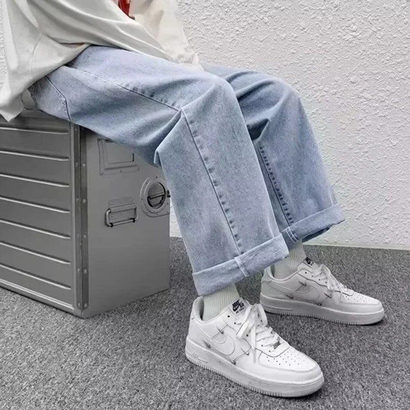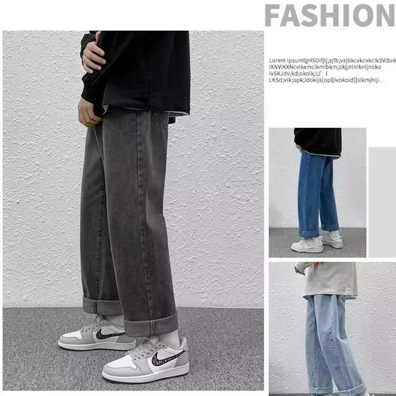 Men Baggy Casual Jeans Male High Street Straight Leg Denim Pants American Classic Retro Summer Casual Long Trousers