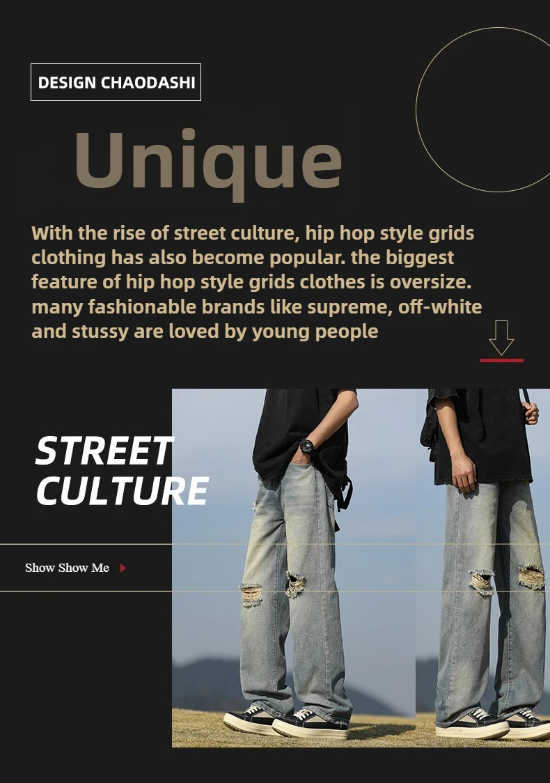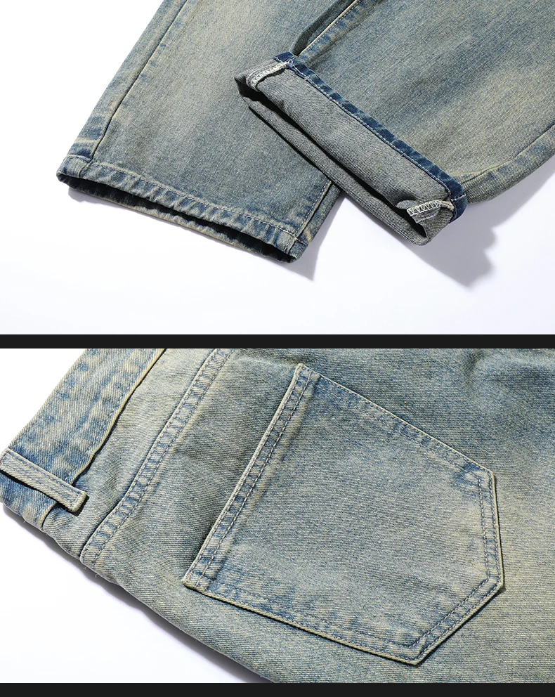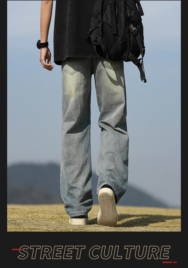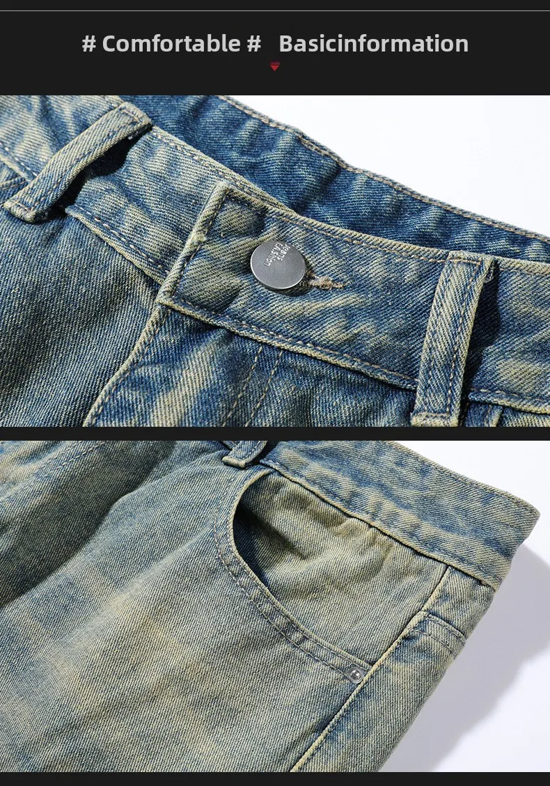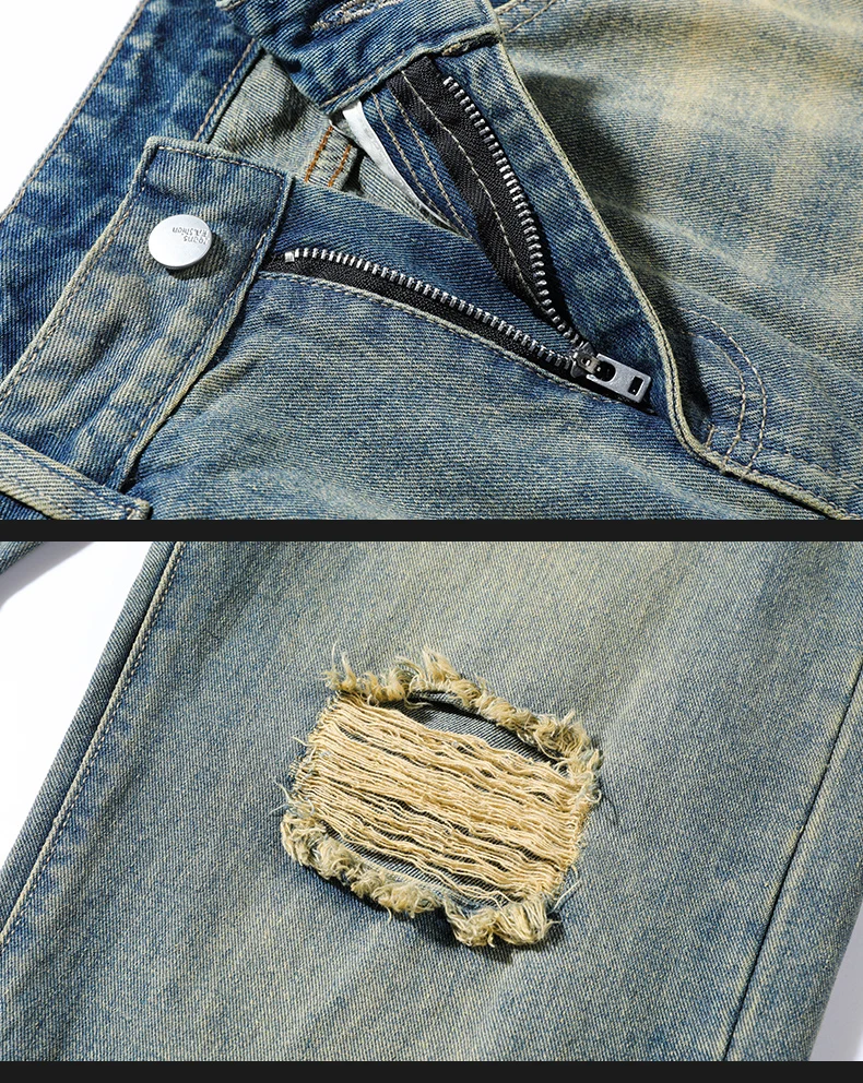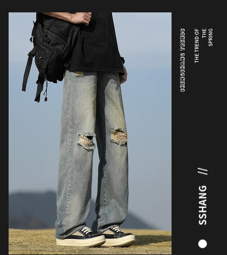 Men's denim pants - Summer American retro straight leg jeans loose and breathable high street fashion ripped casual pants