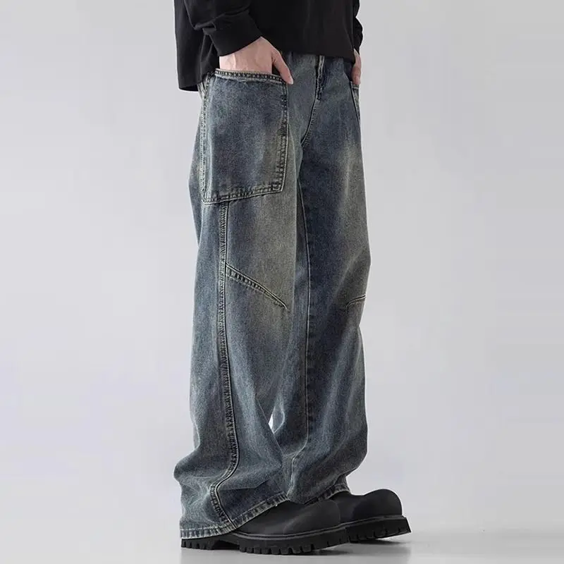 Spring and Autumn American Street Men and Women Trendy Personalized Straight Tube Washed Jeans Couple Loose Retro Casual Pants