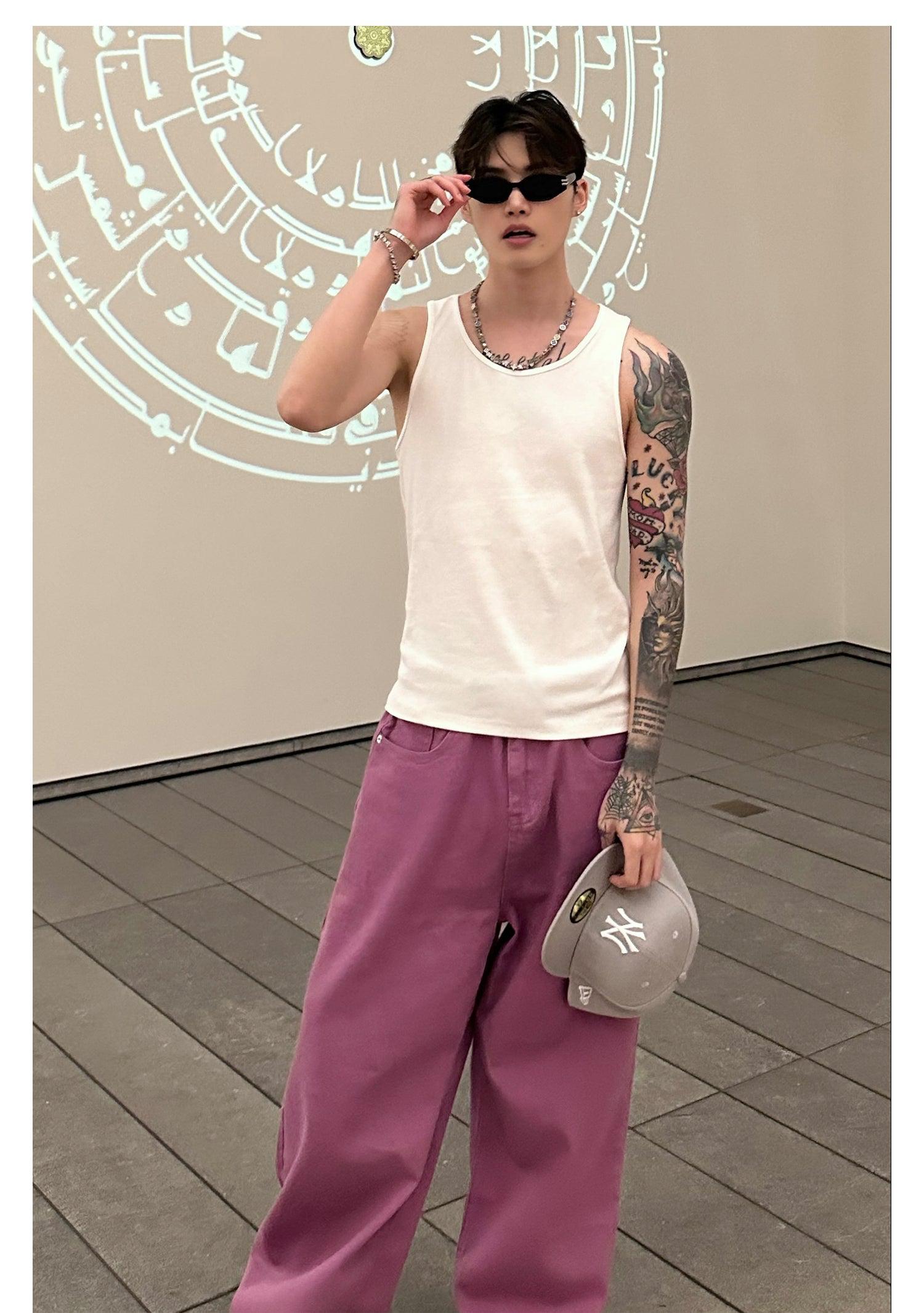 Autumn Vintage Skull Print Loose Straight Pant Men Summer New Fashion Trousers Street Hipster Casual Pants Mens Streetwear