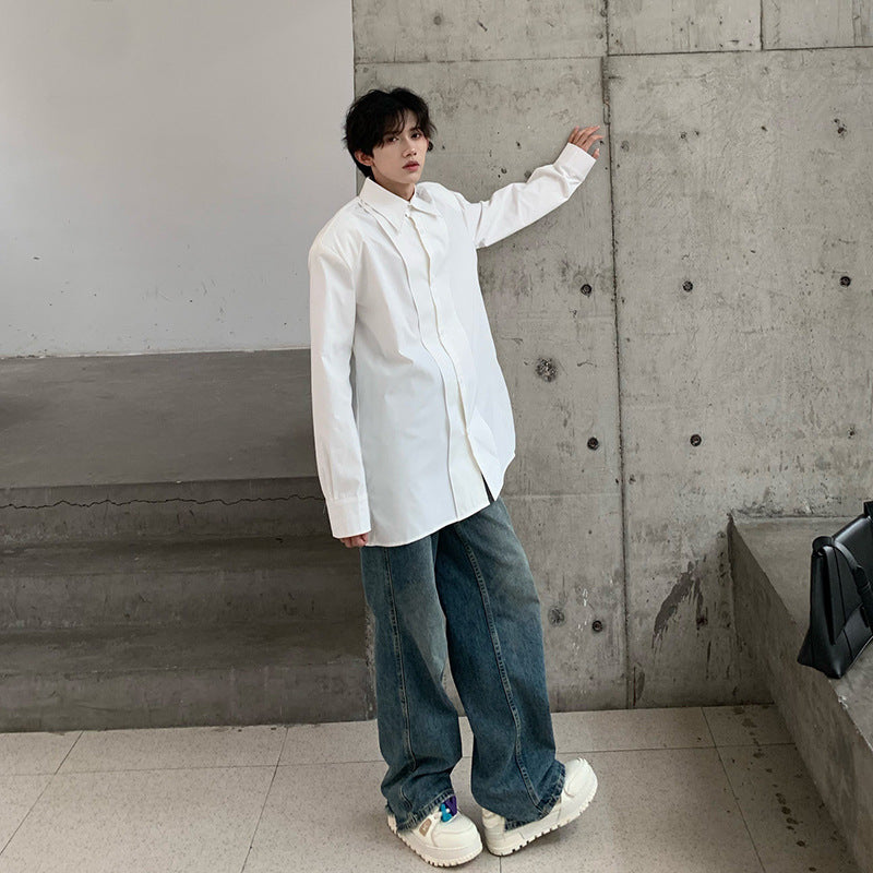 High-end cleanfit padded shoulder long-sleeved shirt for boys, handsome, niche, cold, straight shoulder shirt jacket top