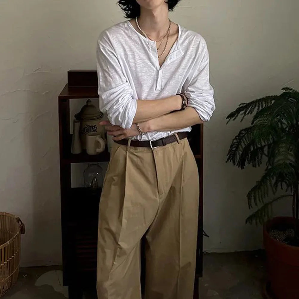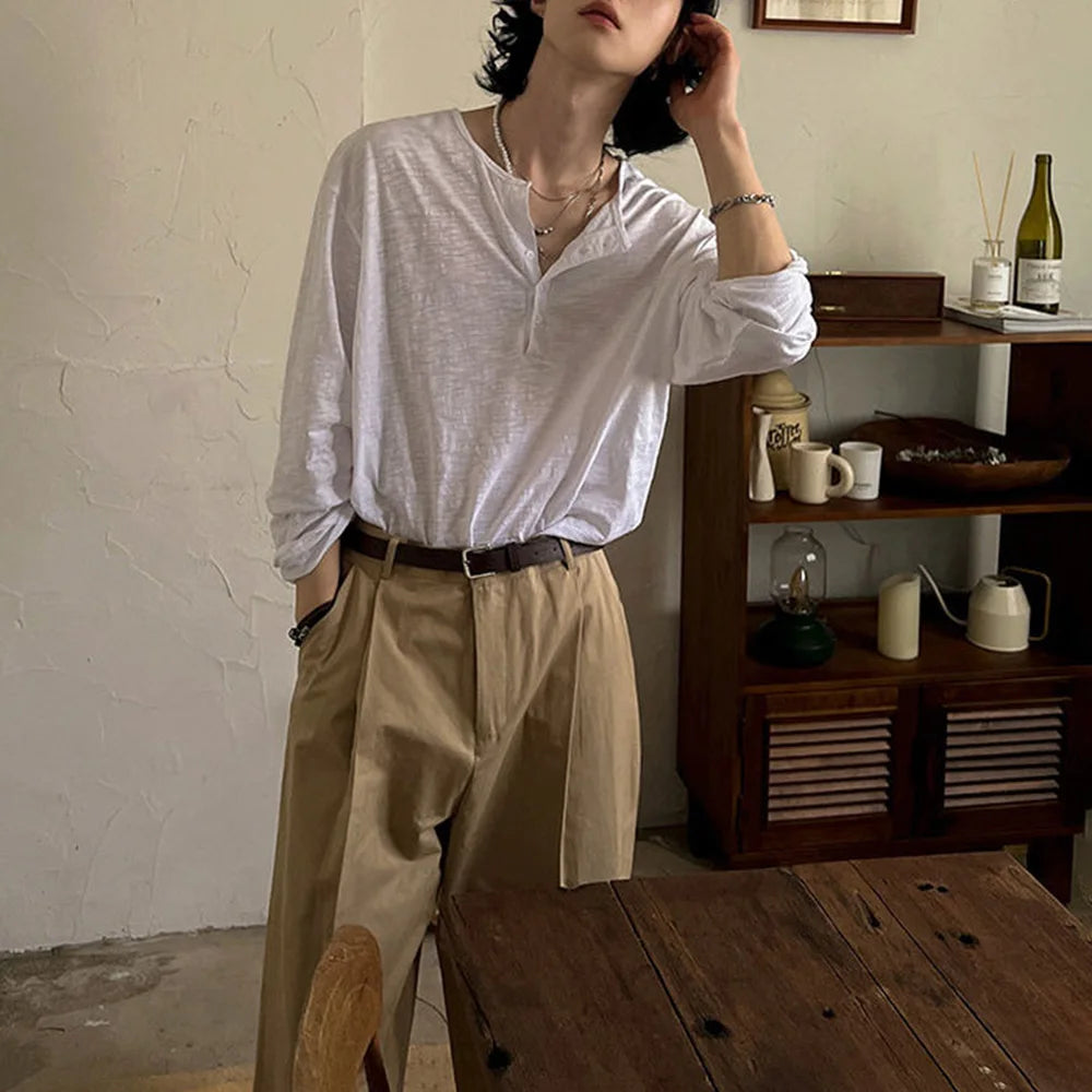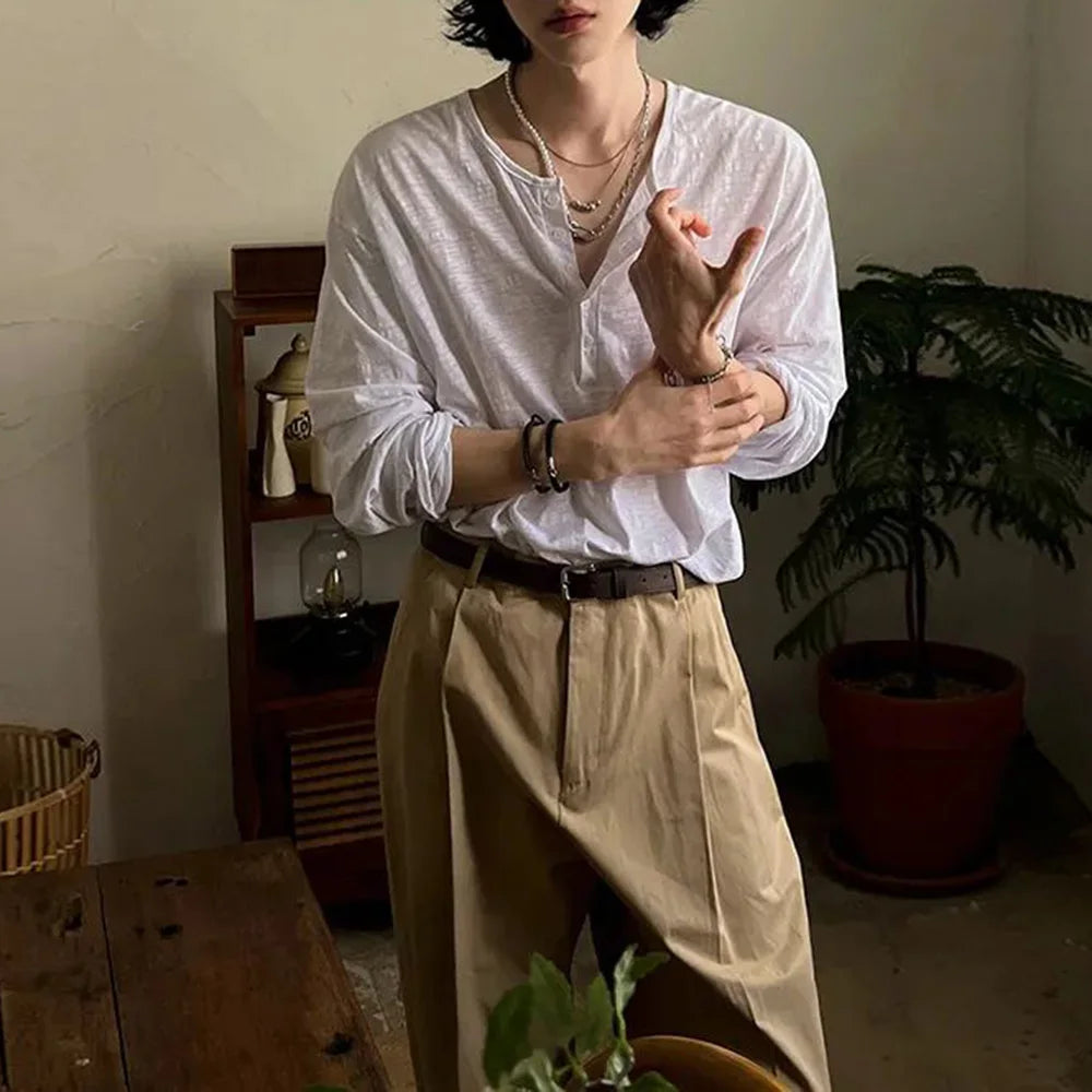 Mens T-Shirt Cotton Casual Thin T-Shirt Daily Basic Breathable Beach Vacation Camping Long-Sleeve Top Men'S Clothing Summer