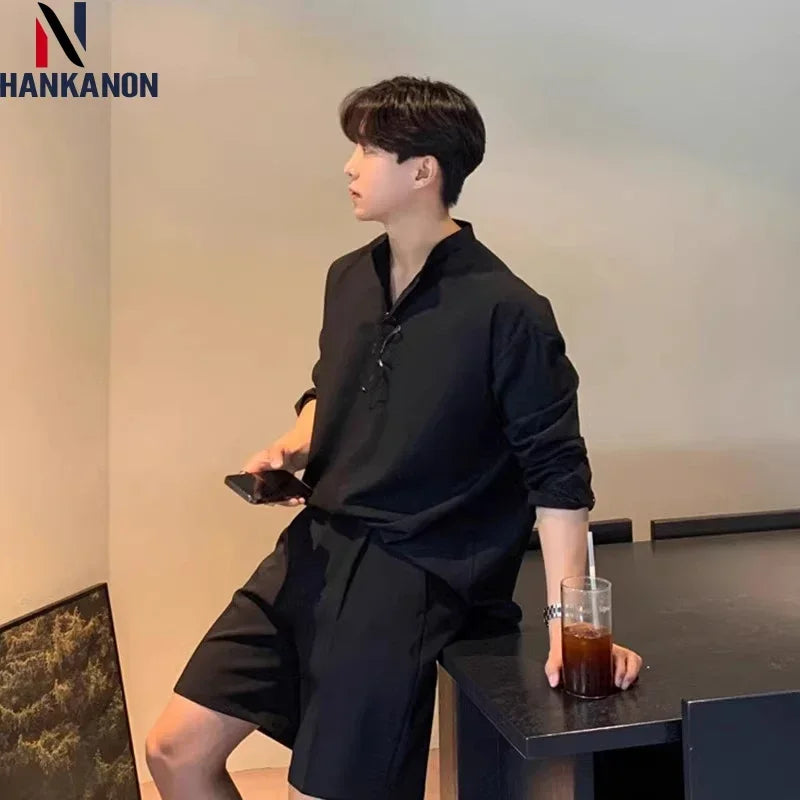 Oversized Korean-style Shirt Hanging Sense Shirt. Youth Long-sleeved Shirt Casual Travel Daily Street Fashion Men Loose-fitting